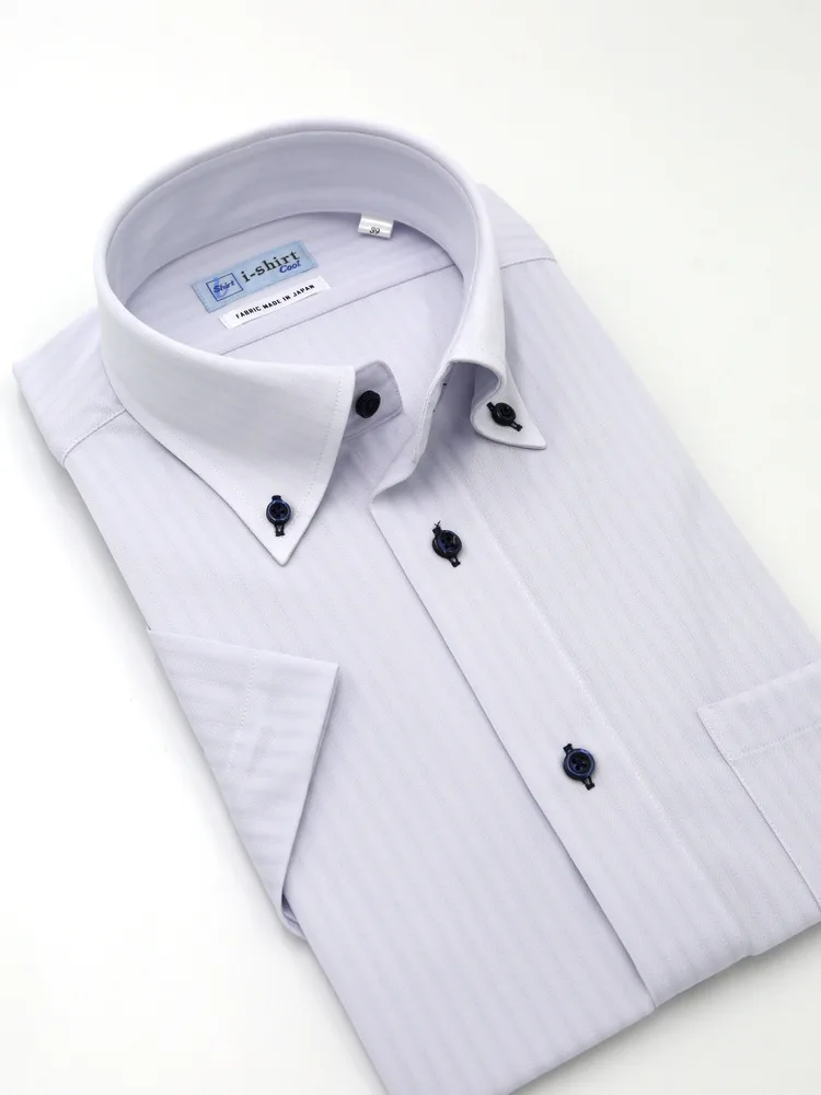 【即納】WEB限定【完全ノーアイロン】半袖 アイシャツ ボタンダウン ストレッチ 織柄無地 i-shirt 春夏