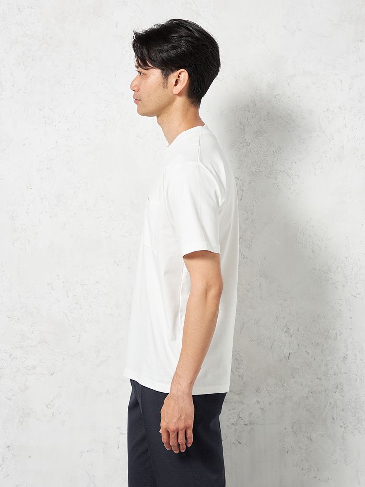 【汗じみ防止】半袖クルーネックTシャツポケット付ビズTシルケット加工カジュアルインナー無地TOKYORUN春夏