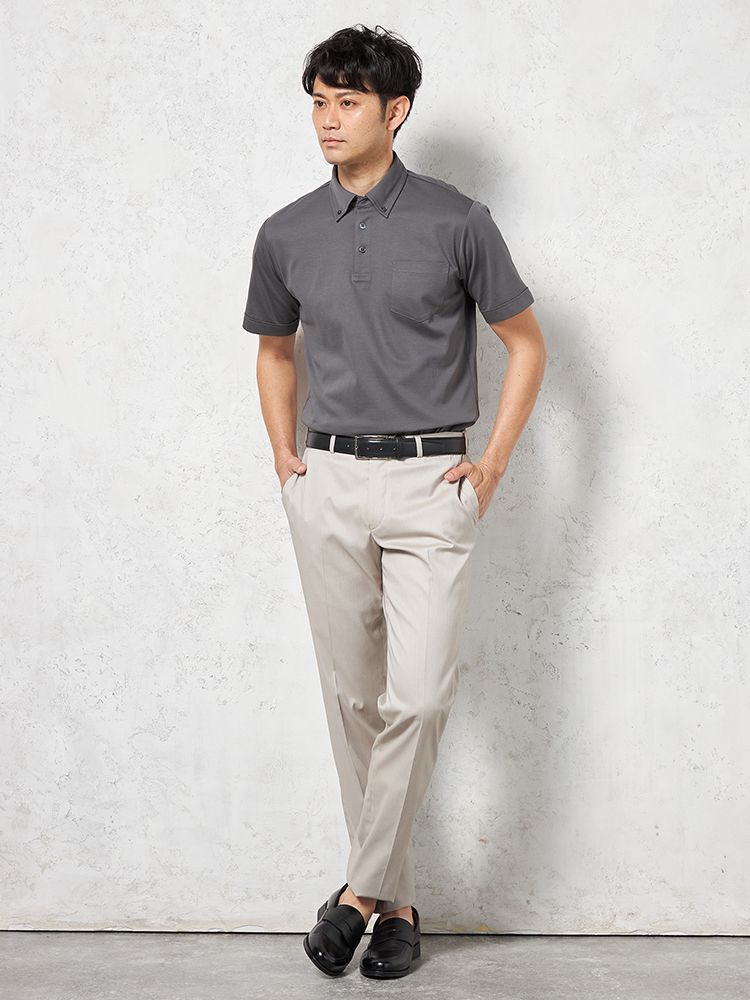 【汗じみ防止】 半袖 ビズポロシャツ ボタンダウン 無地 TOKYO RUN 春夏(C.グレー)