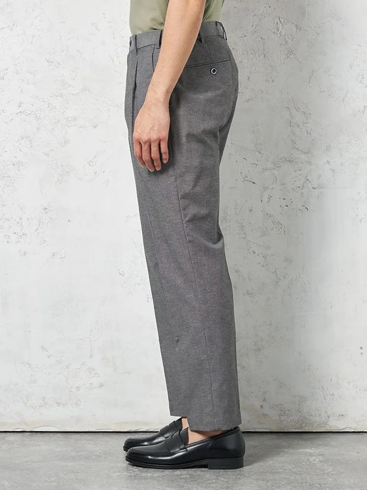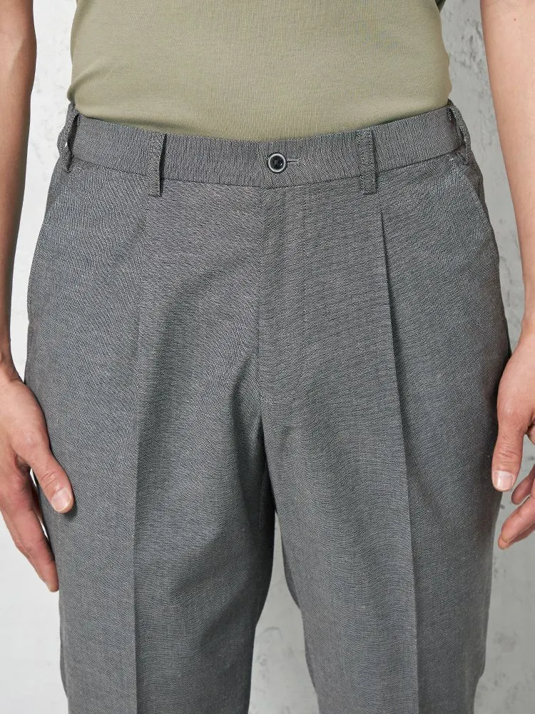 【綿麻混素材】パンツ ワンタック ストレッチ【セットアップ商品有】 リッケンバッカーブラック 春夏(M.グレー)