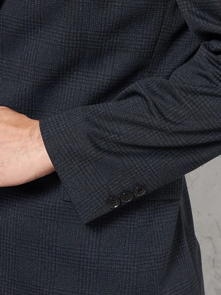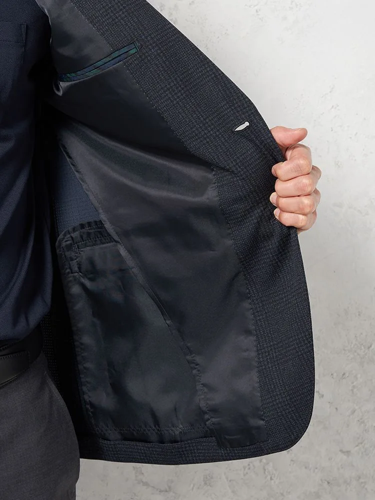 【ウォッシャブル】ジャケット2つボタン【i-Jacket-アイジャケット-】ストレッチ軽量イタリアンチェック柄ネイビー春夏