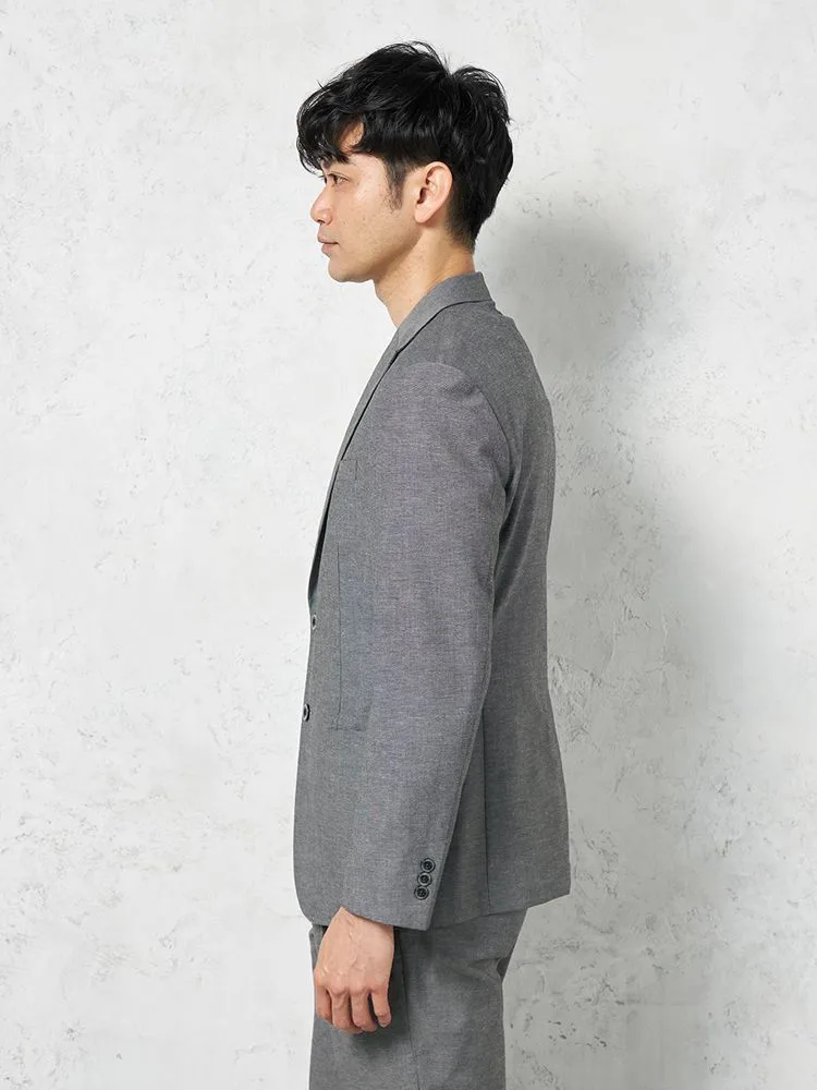 【綿麻混素材】ジャケット 2つボタン ストレッチ【セットアップ商品有】 リッケンバッカーブラック 春夏(M.グレー)
