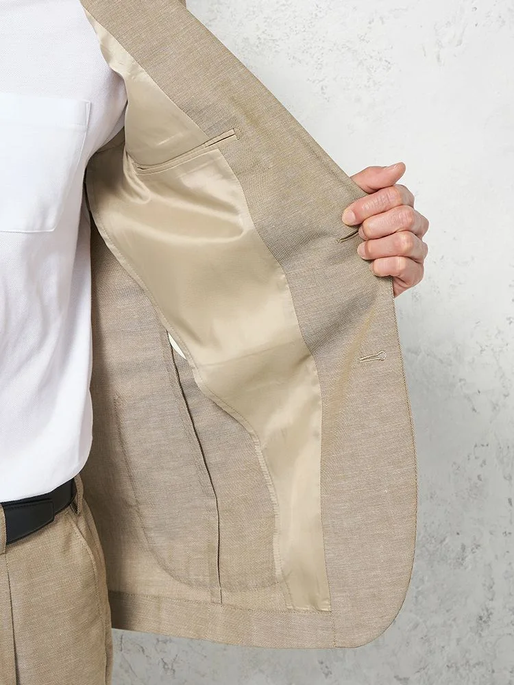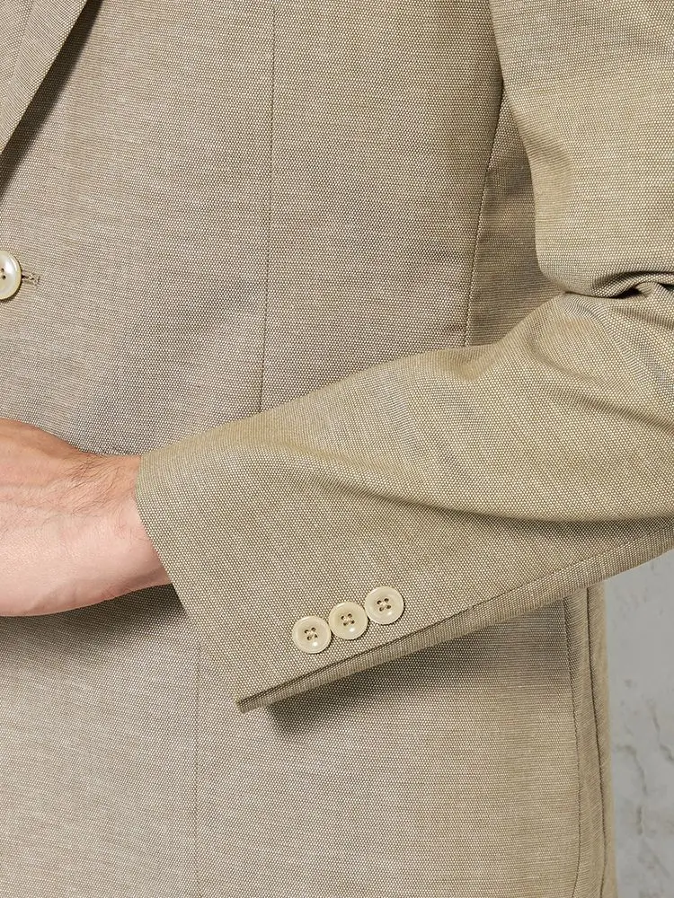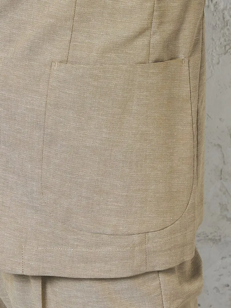 コットンリネン混のナチュラルな風合いで、春夏の装いにも馴染む爽やかなアイテムに仕上げました。
