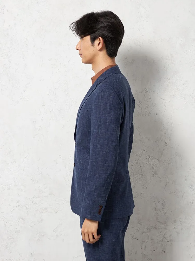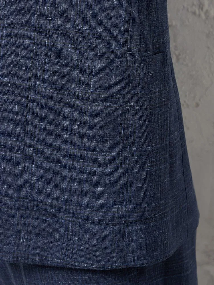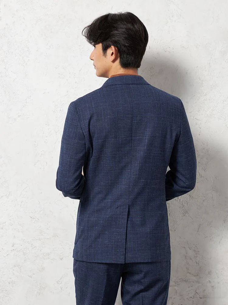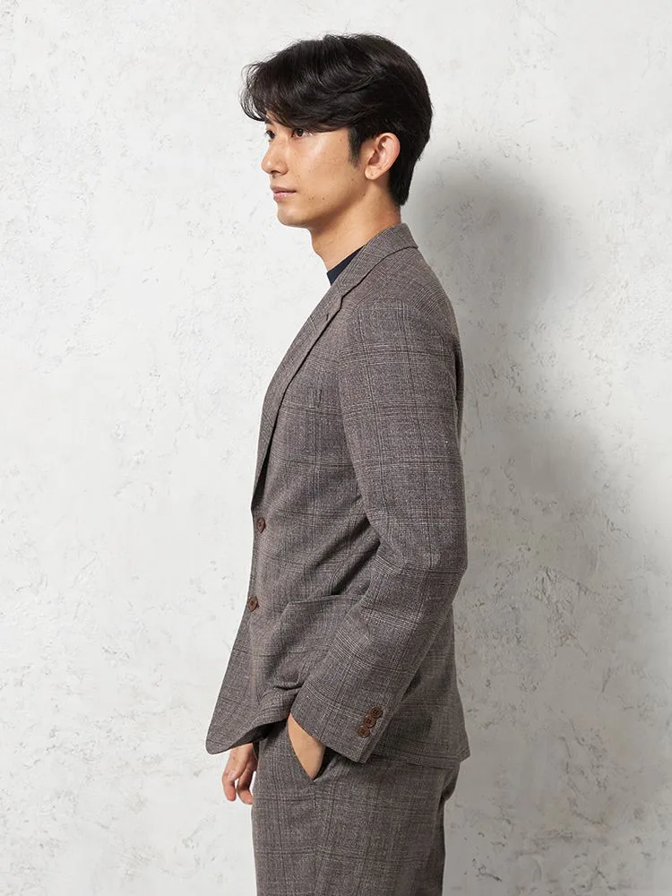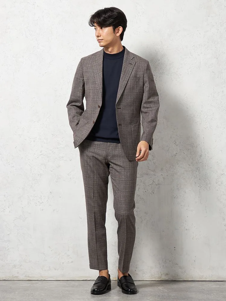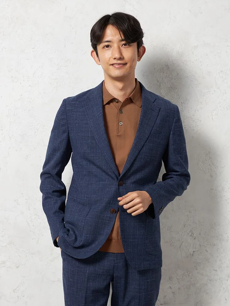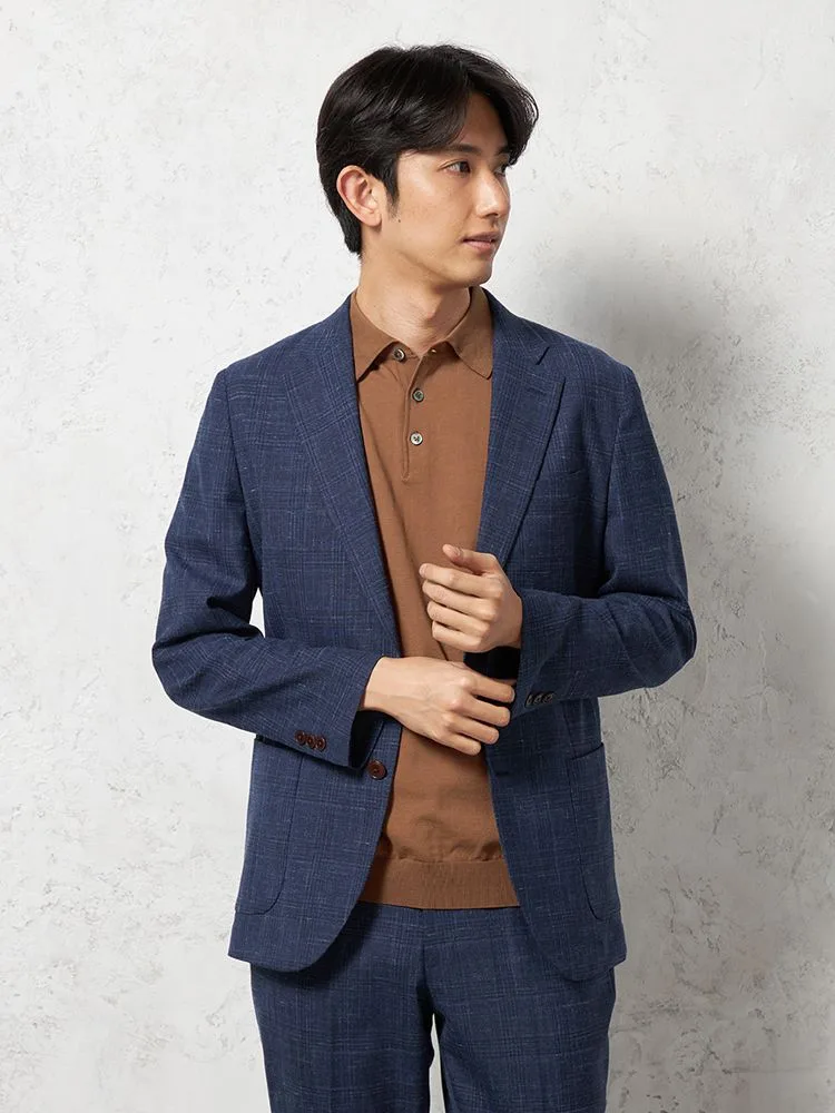 【ストレッチ】ジャケット2つボタンTOLLEGNO社生地使用キュプラ裏地グレンチェックS&MBLUELABEL
