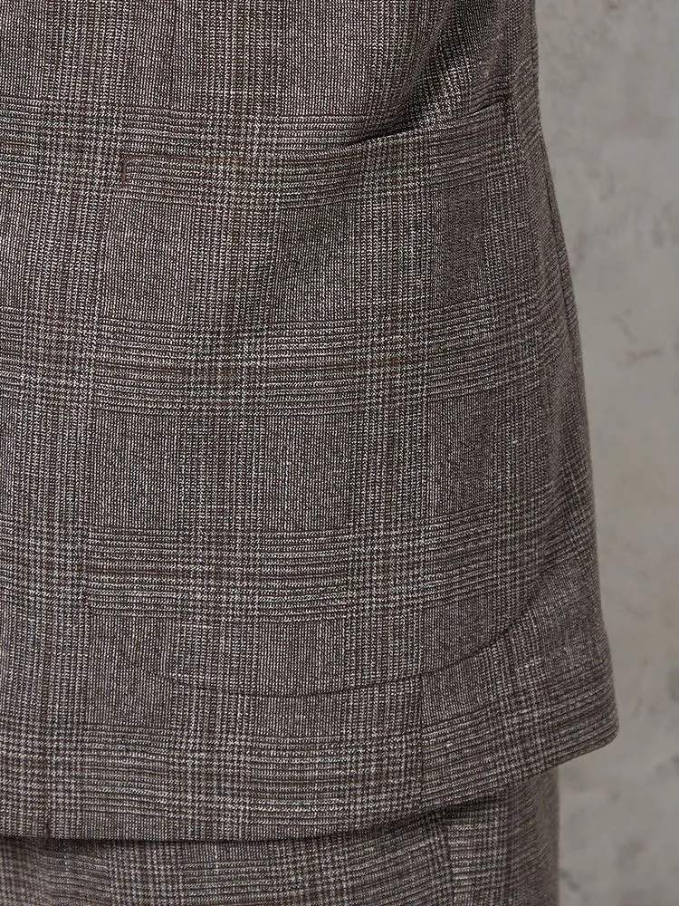 夏のトラッドを堪能できる、グレンチェックの2つボタンジャケットです。