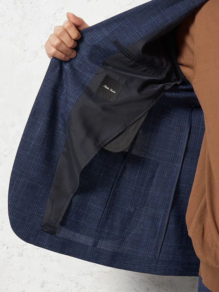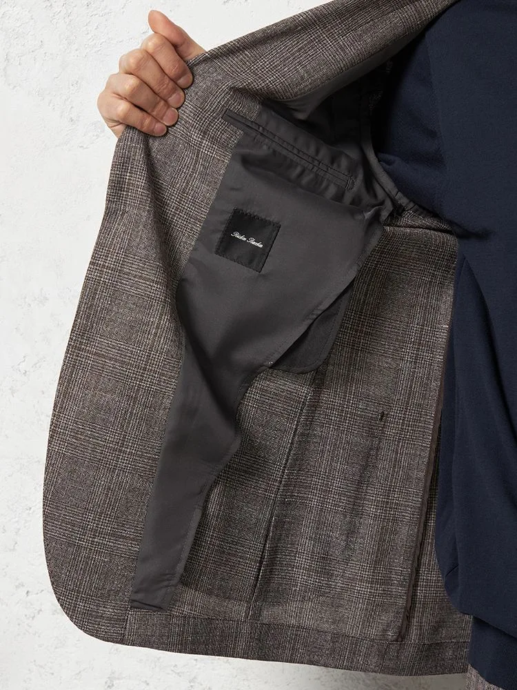 【ウール・リネン混】ジャケット2つボタン【イタリアREDA社製】軽量チェック春夏