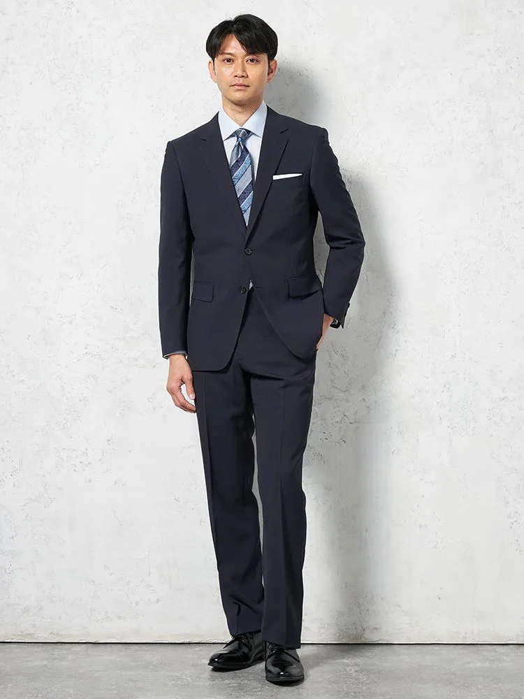 【即納】【WEB限定】スーツ2つボタンネイビーシャドウストライプ上下ウォッシャブル3シーズン対応