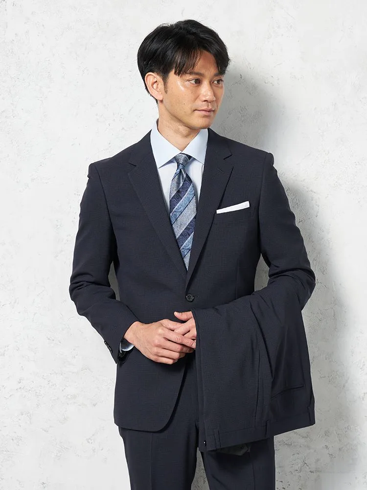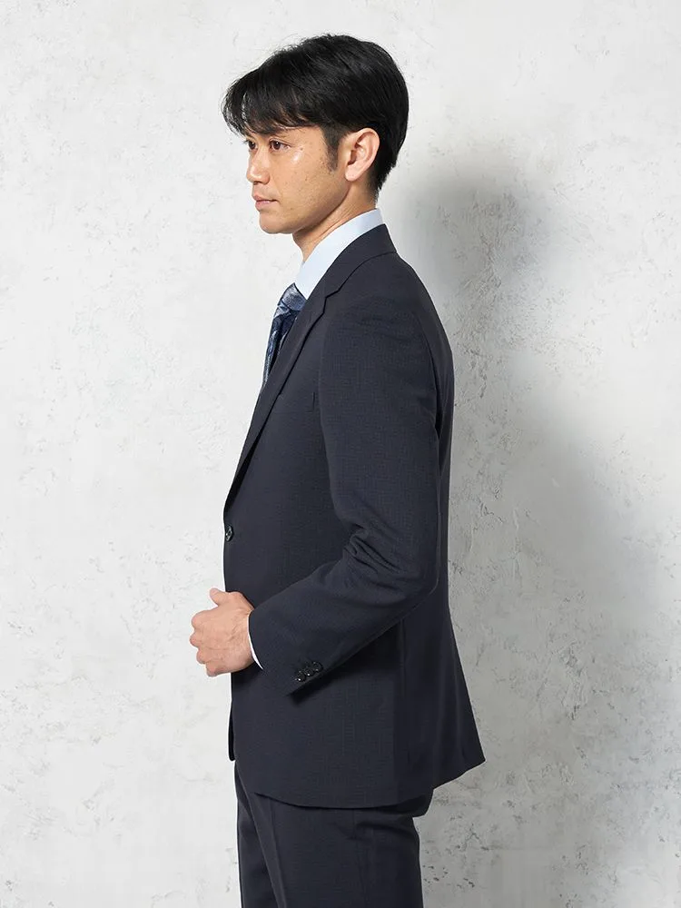 【上下ウォッシャブル】スーツ2つボタンツーパンツイージーケアネイビーマイクロチェックフュージョンクラブ