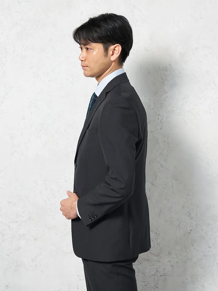 【即納】【WEB限定】スーツ2つボタンブラックシャドウストライプ上下ウォッシャブル3シーズン対応