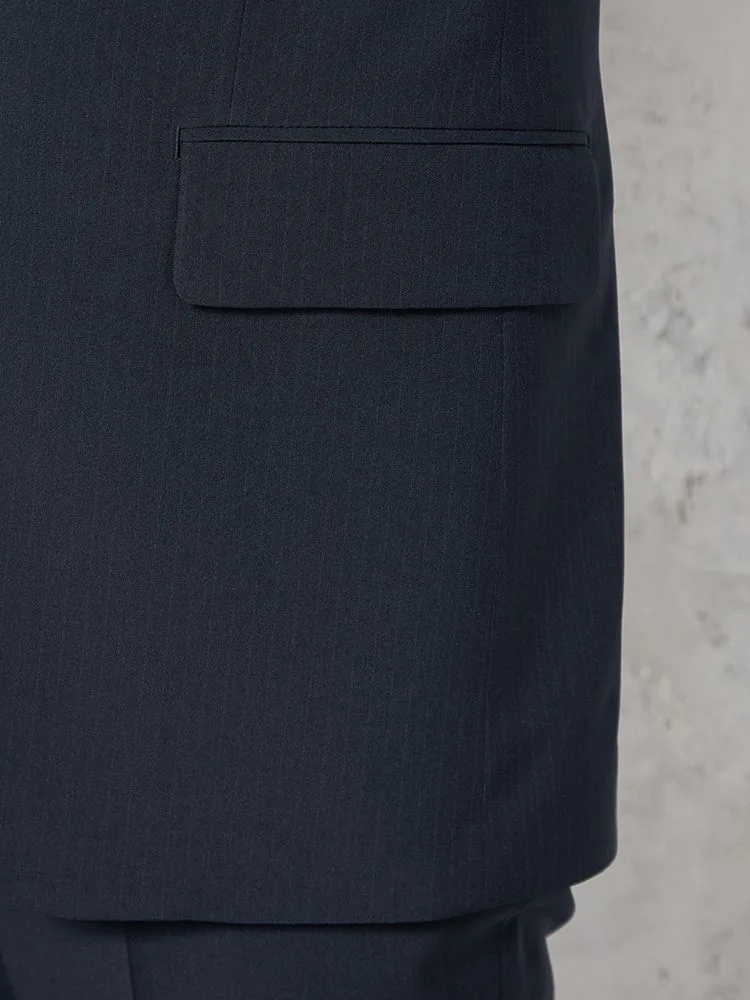 【即納】スーツ2つボタン【WEB限定】上下ウォッシャブルストライプネイビー通年