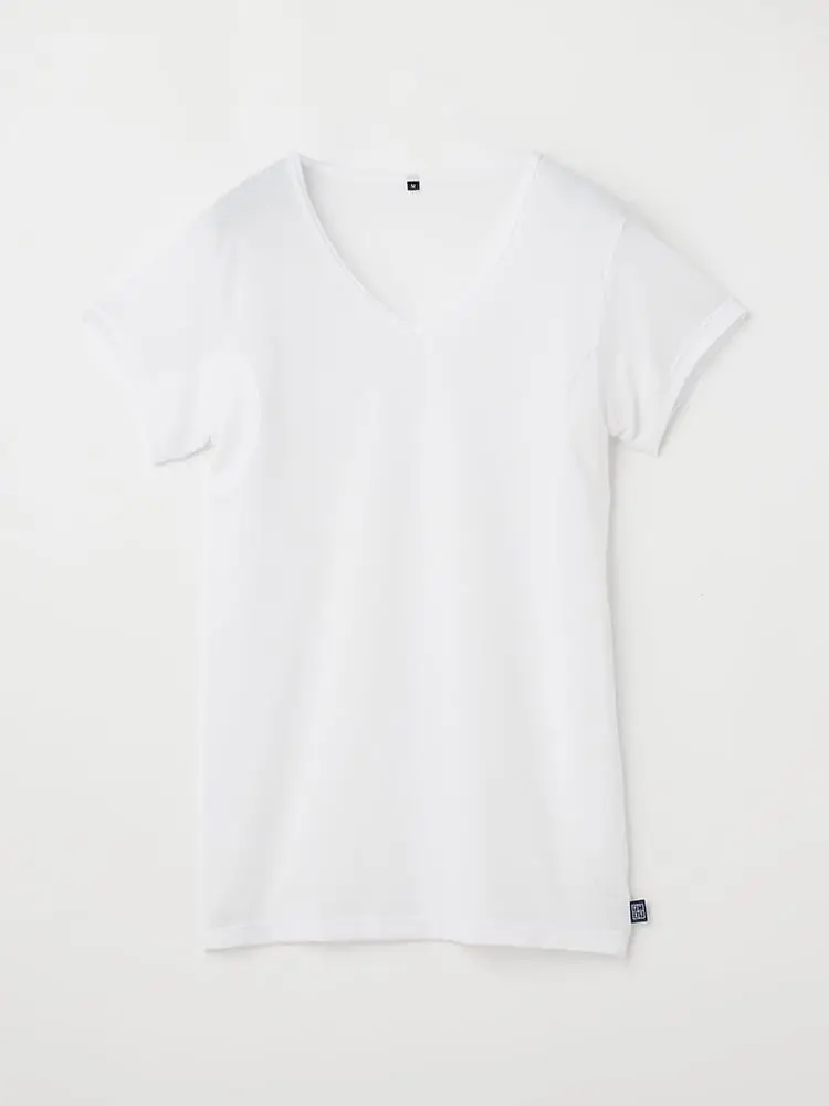 動きやすい半袖&シャツから覗かないVネック仕様。