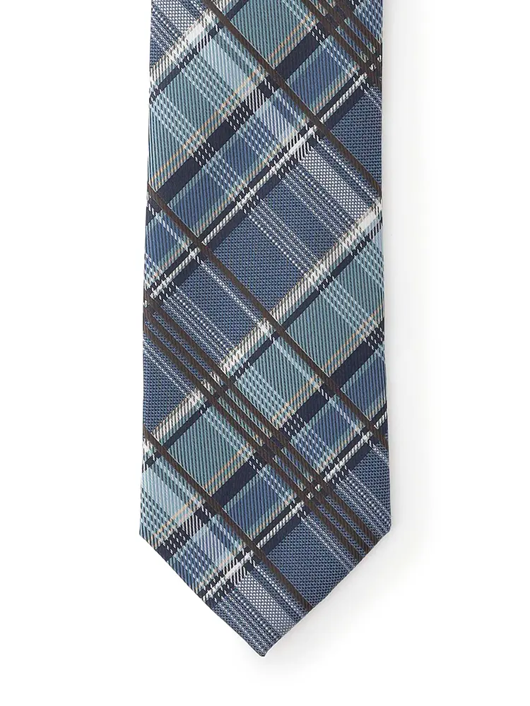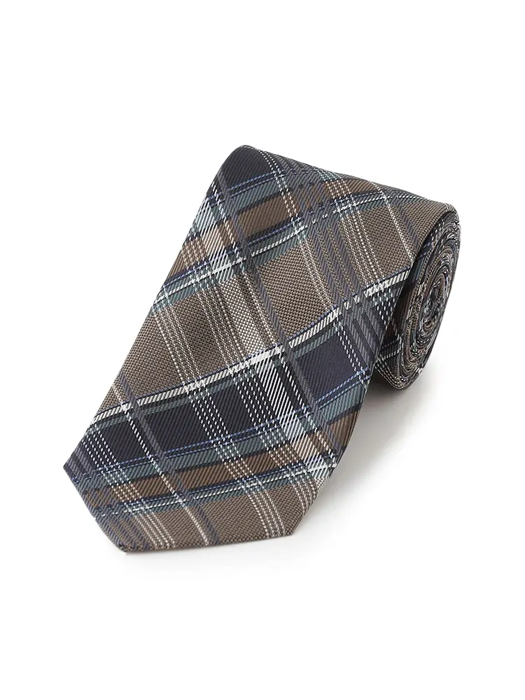 親しみやすさを感じる、チェック柄のネクタイ。