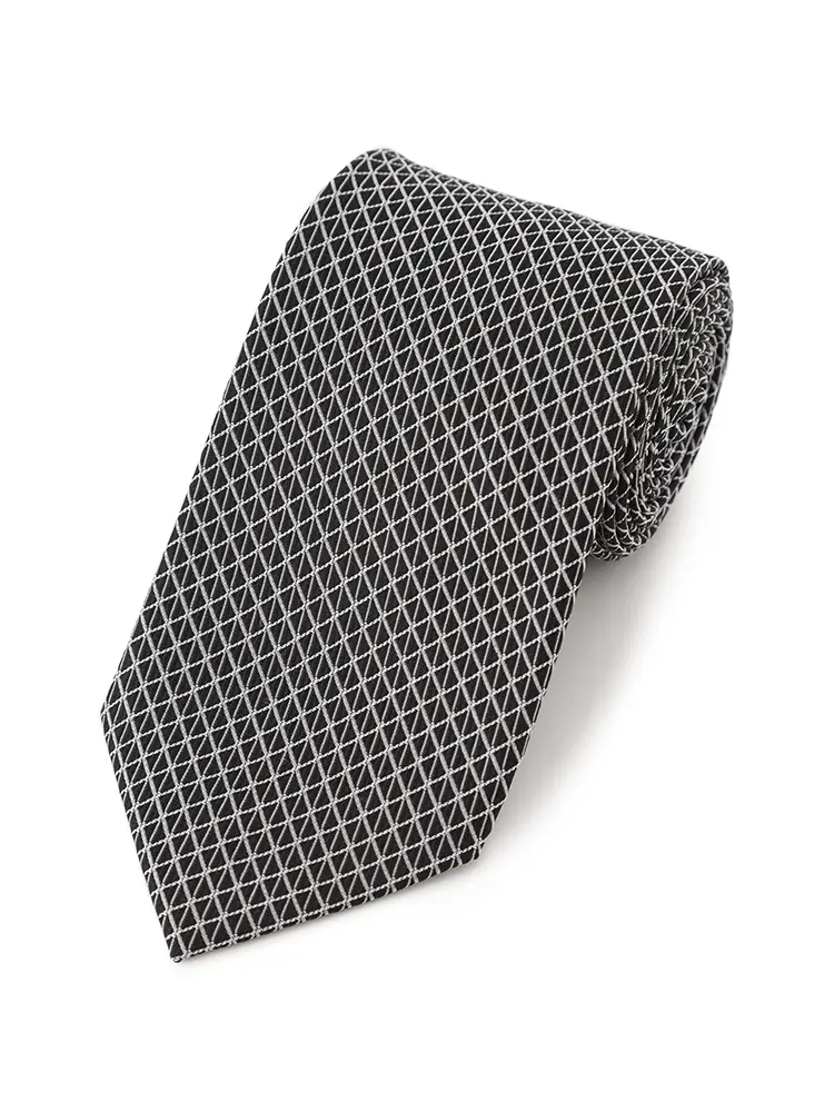 格子模様を基調とした、細やかな総柄のネクタイです。