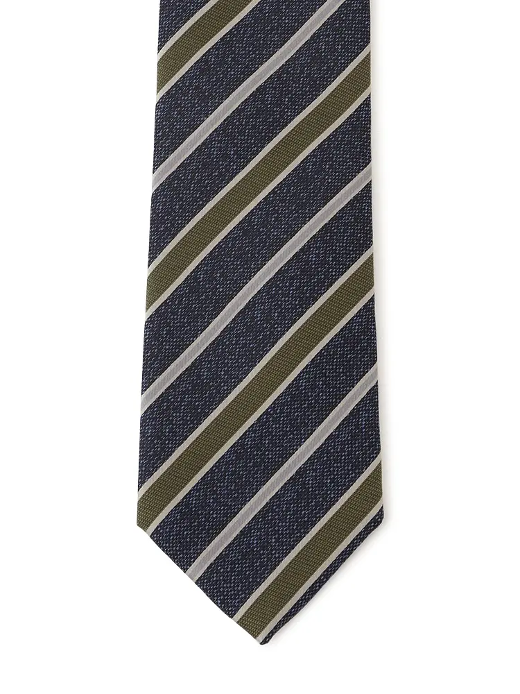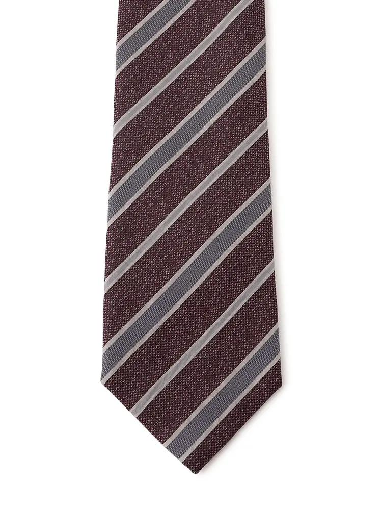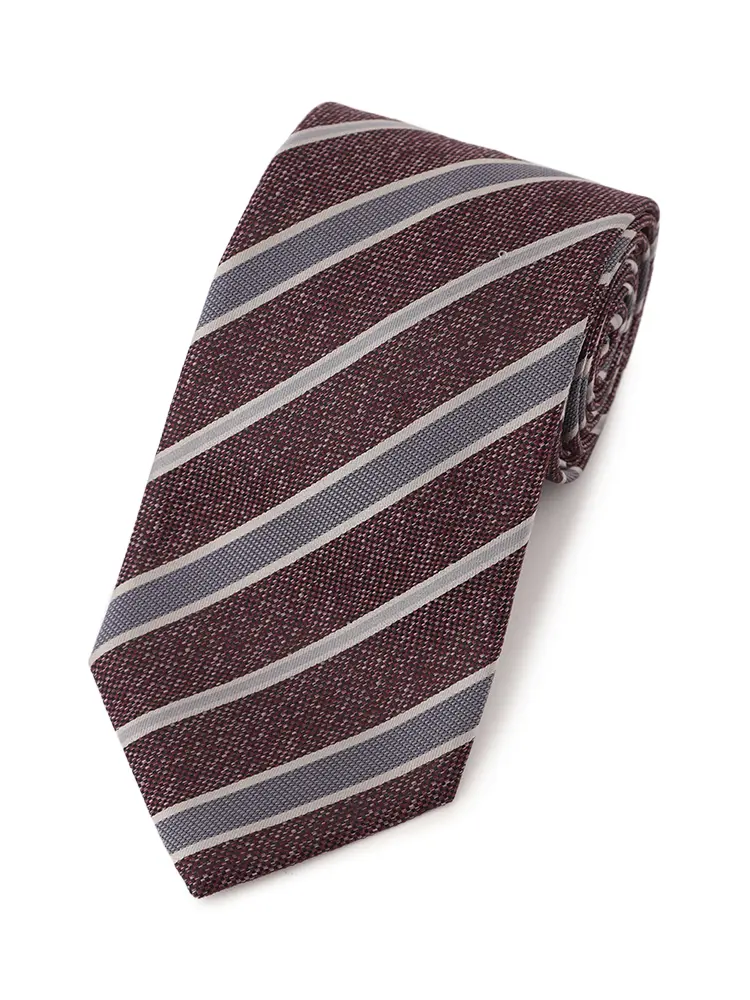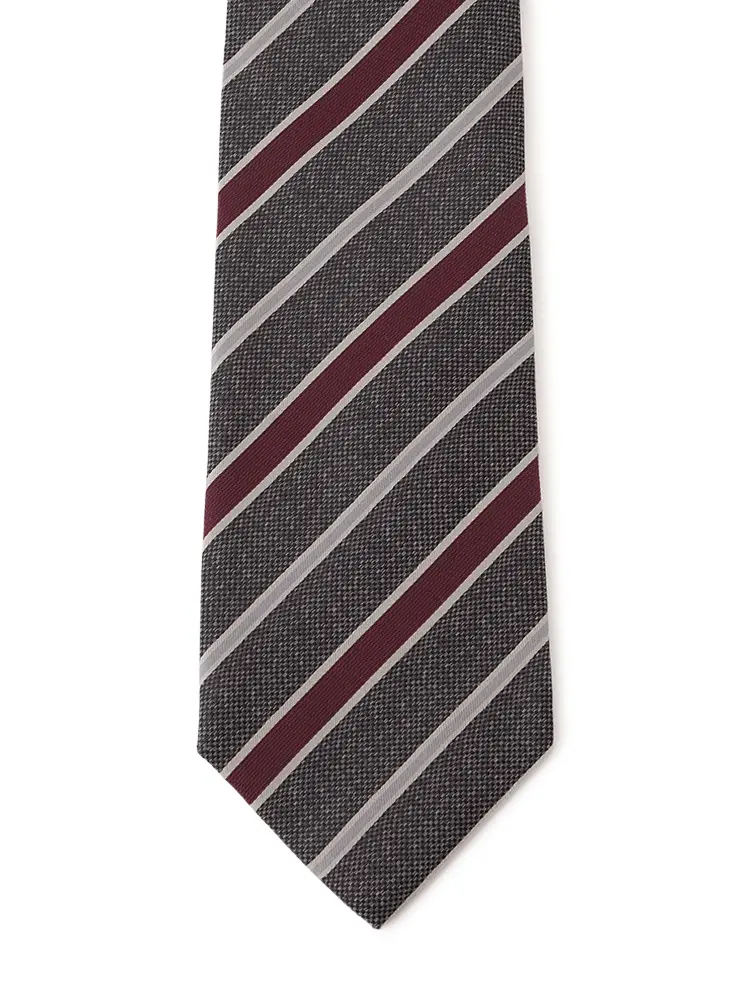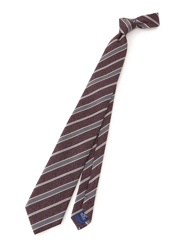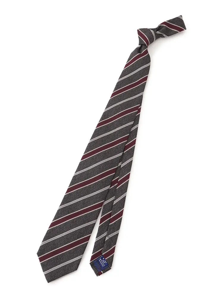 さまざまな織地をミックスした、レジメンタルストライプのネクタイです。