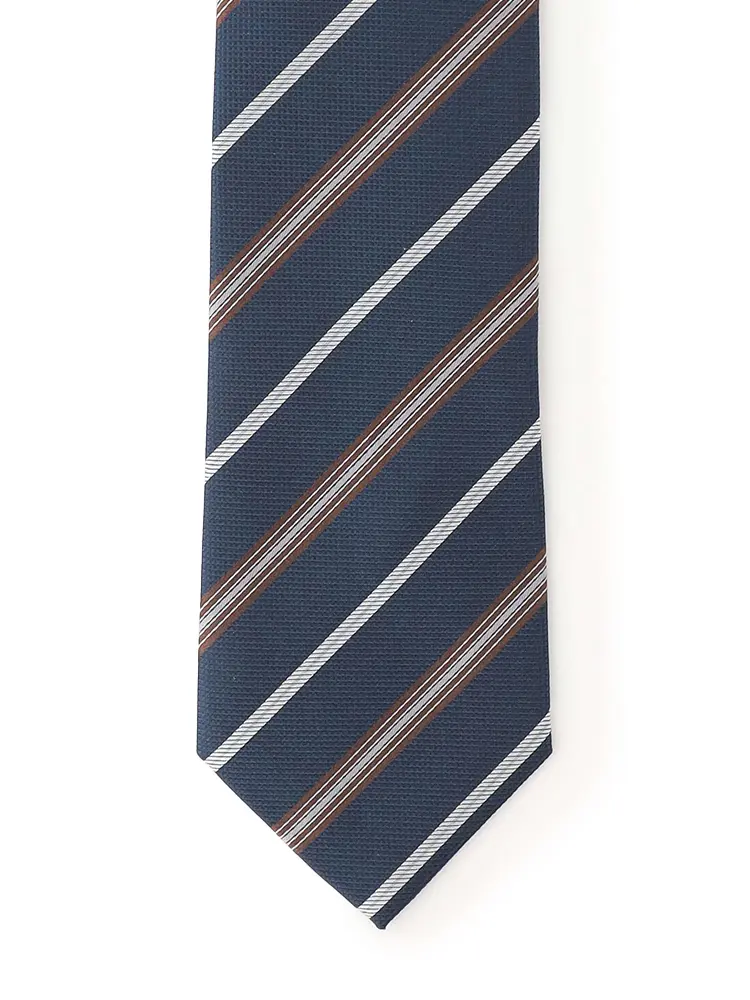 【リッケンバッカー】 シルクミックスネクタイ ストライプ レギュラー 秋冬(ブラウン)