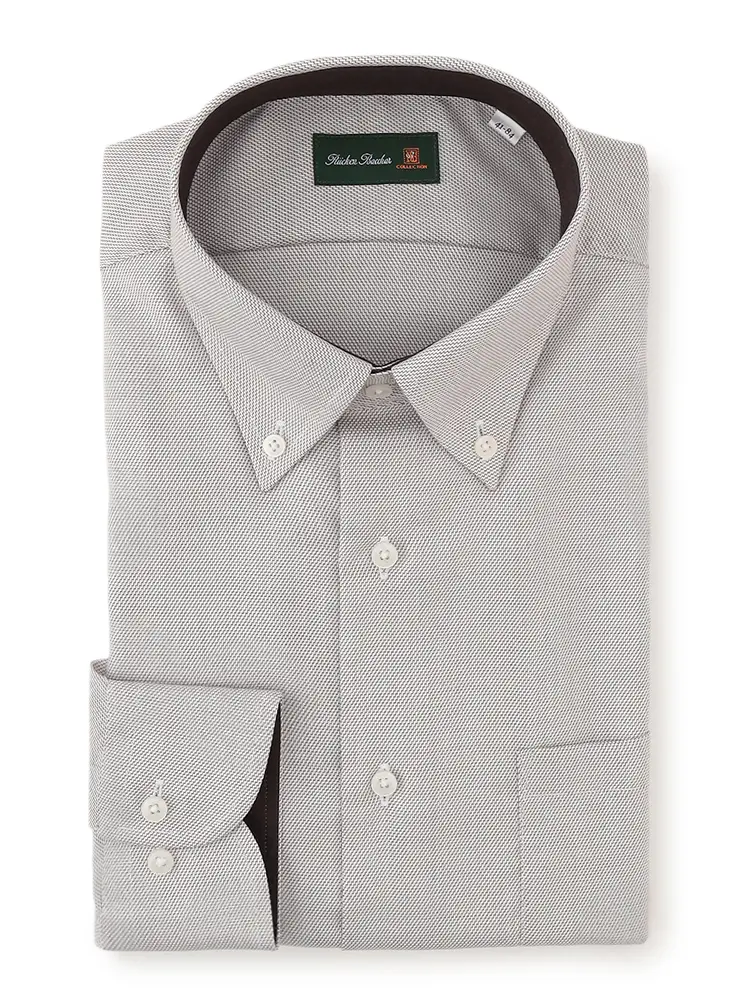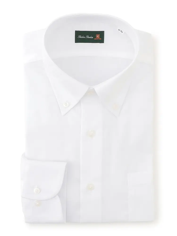 【形態安定】長袖 ワイシャツ ボタンダウン 白ドビー 織柄無地 ハントレークラブ 通年