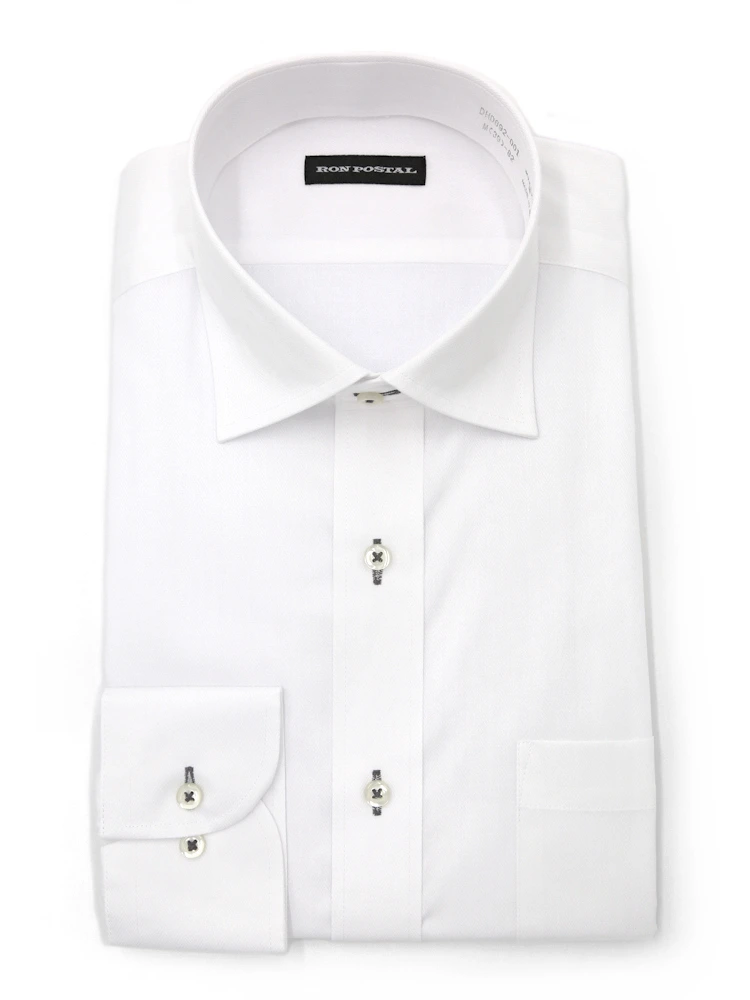 【形態安定】長袖 ワイシャツ セミワイド イージーケア 白ドビー RON POSTAL 通年