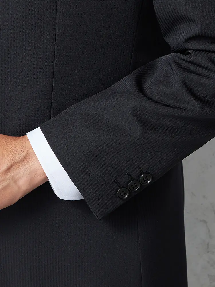 【即納】【WEB限定】スーツ2つボタンブラックシャドウストライプ上下ウォッシャブル3シーズン対応
