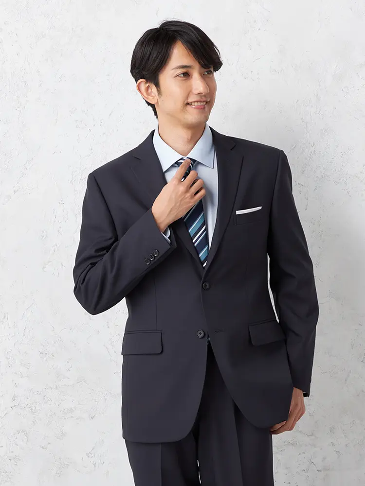 【即納】【WEB限定】スーツ2つボタンネイビーシャドウストライプ上下ウォッシャブル3シーズン対応