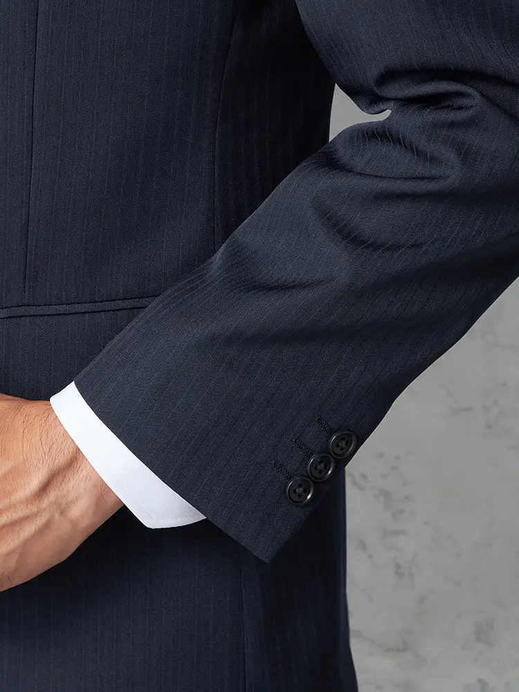 【即納】【WEB限定】スーツ2つボタンネイビーシャドウストライプ上下ウォッシャブル3シーズン対応