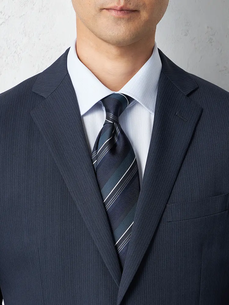【即納】【WEB限定】スーツ2つボタンネイビーシャドウストライプ上下ウォッシャブル3シーズン対応
