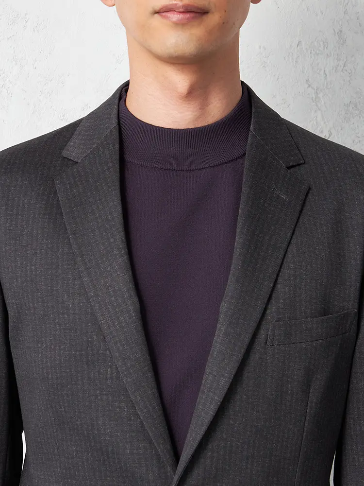 2つボタン×ノッチドラペルのスタンダードなデザインのテーラードジャケット。