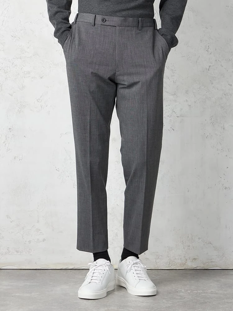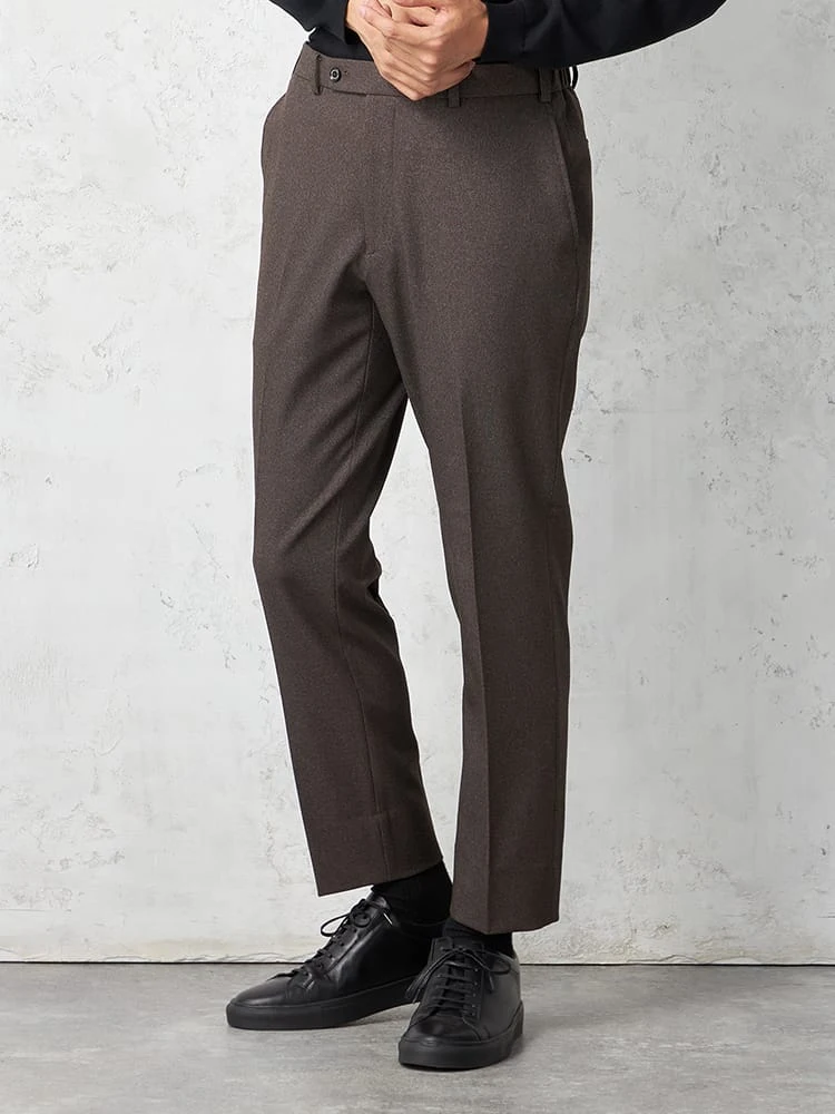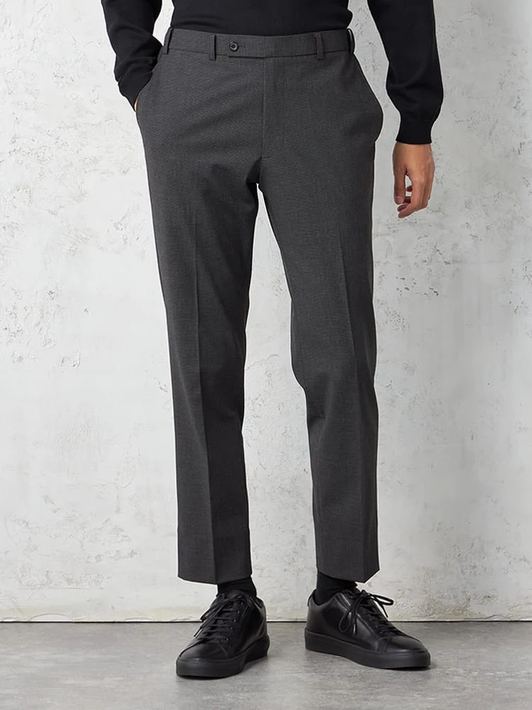細かなハウンドトゥースチェックのノータックスラックス。