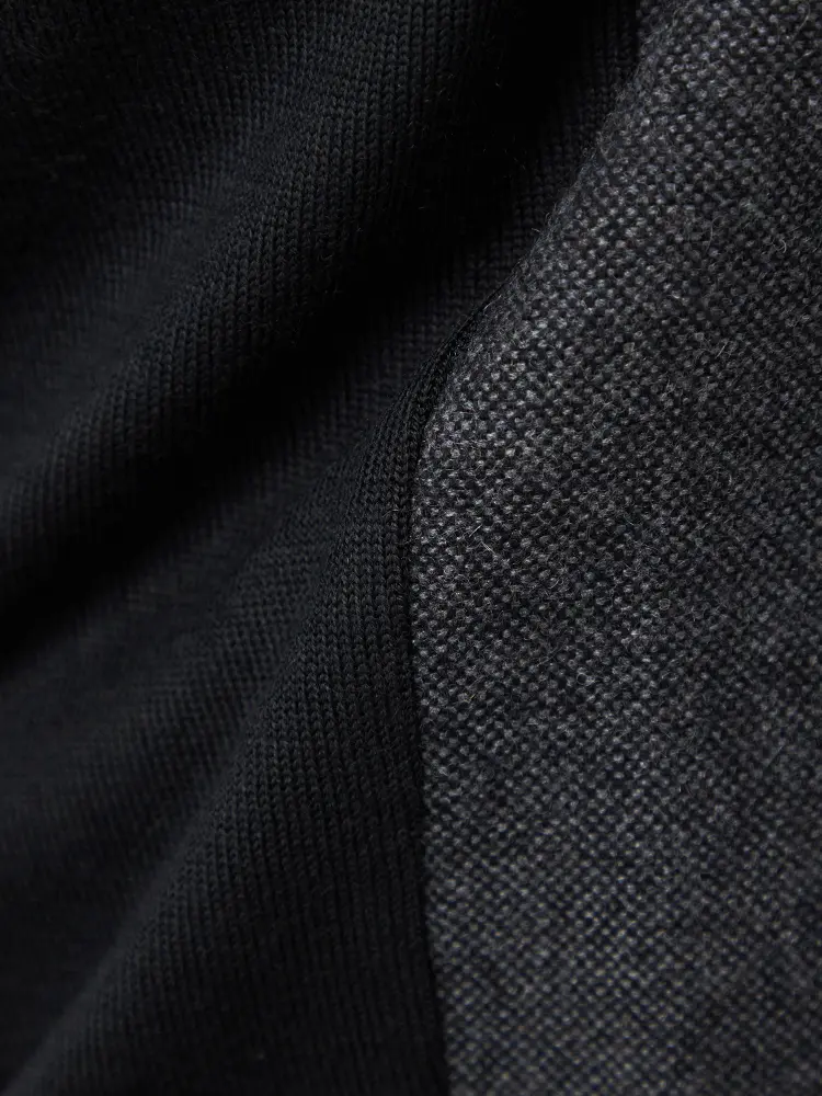 後ろ身頃をニット素材を切り替えて、リラックス感のある着心地に。
