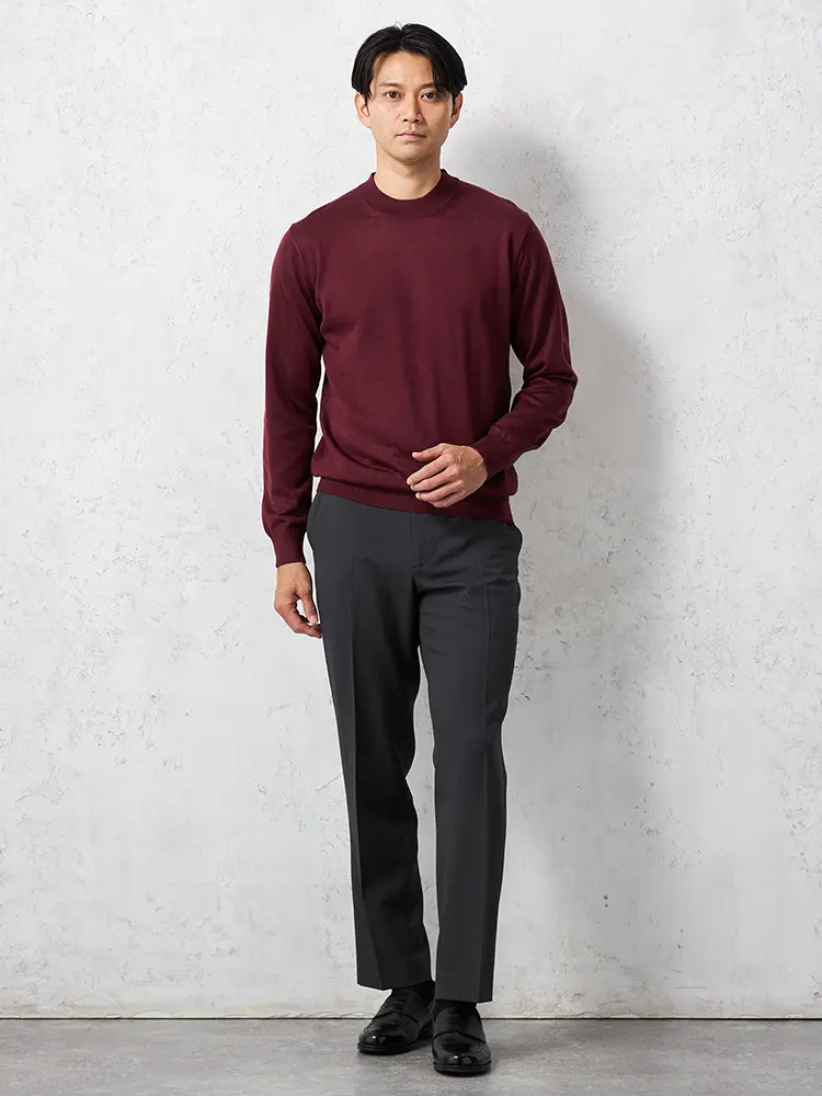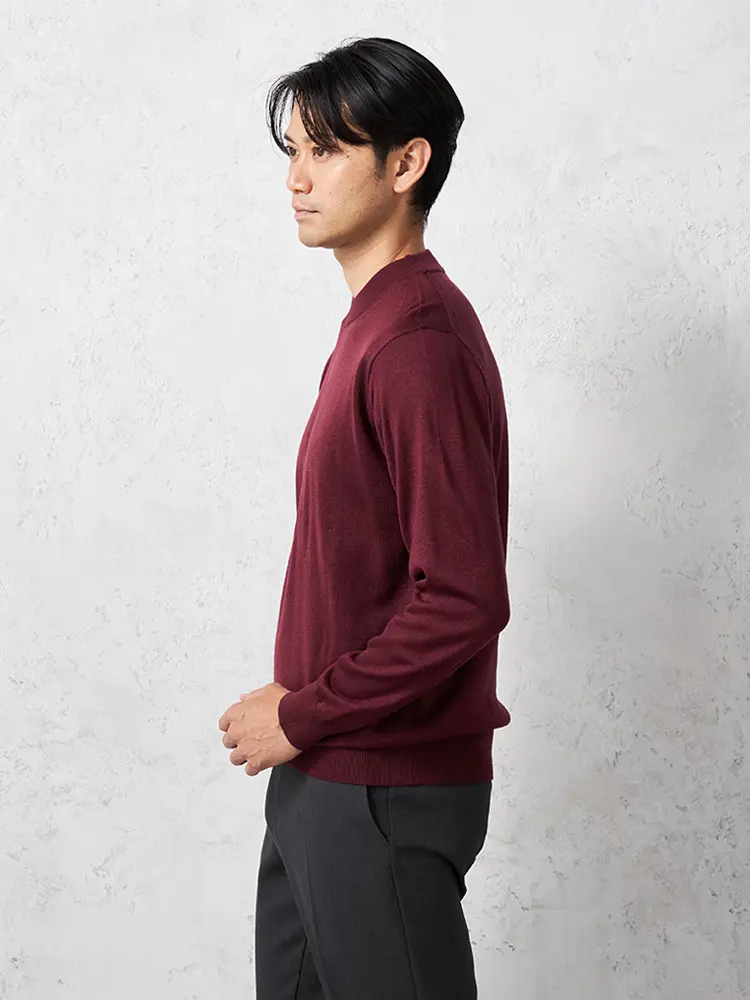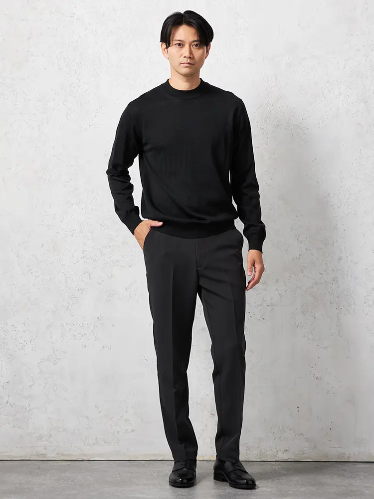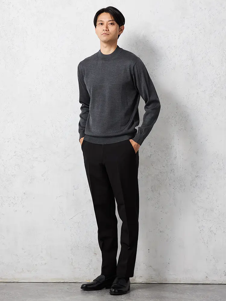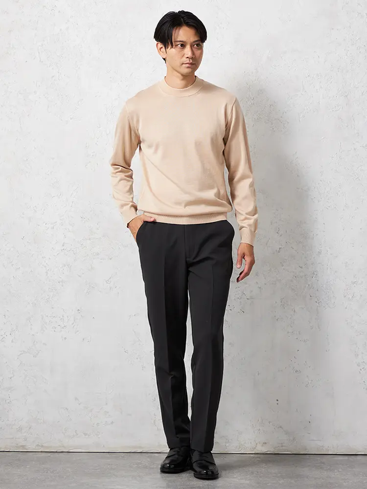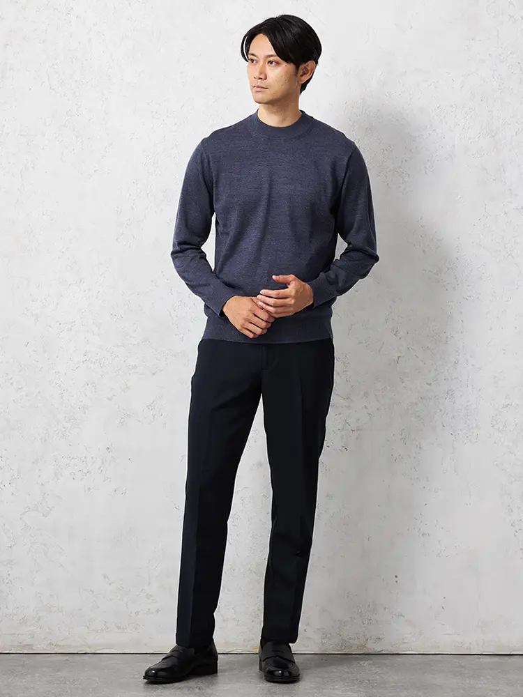 モックネックの首元が特長で保温性もあり、あたたかく着られます。