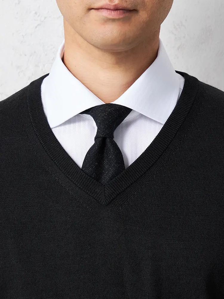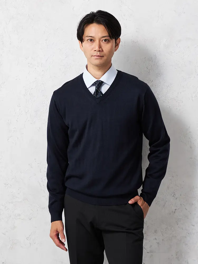 薄すぎない、ちょうど良い仕上がりの保温性もある長袖Vネックセーターです。