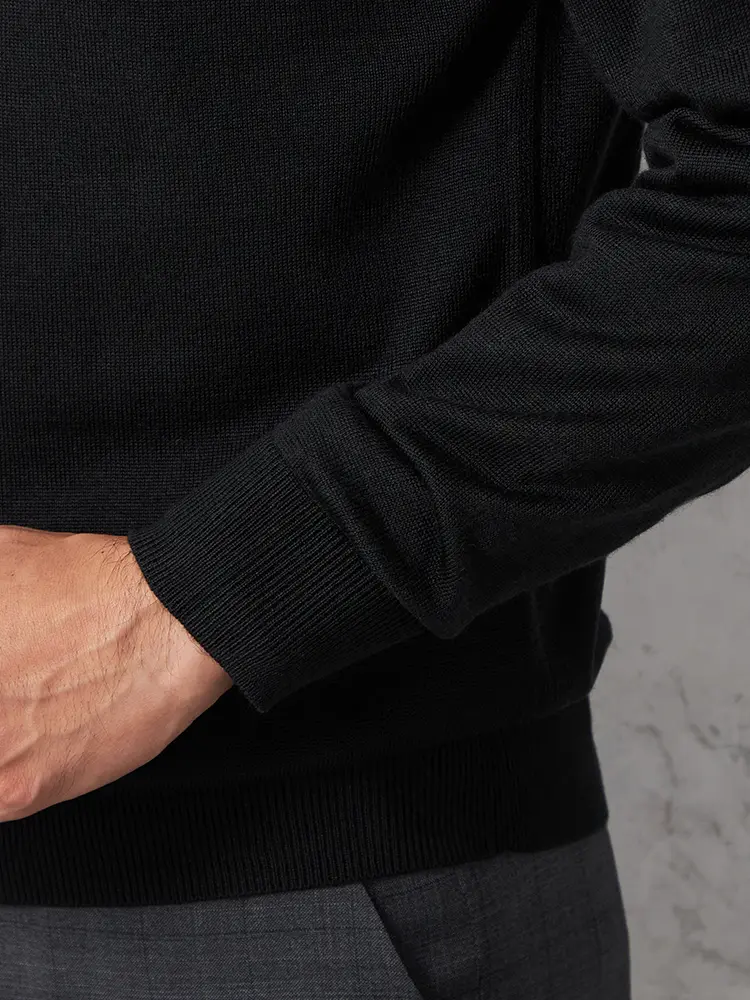 【リッケンバッカーブラック】 梳毛モックネックセーター カジュアルインナー ニット 長袖 保温 秋冬