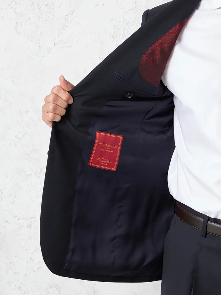 上着は型くずれしにくい総毛芯仕立て、胴裏、袖裏にはキュプラを使用。