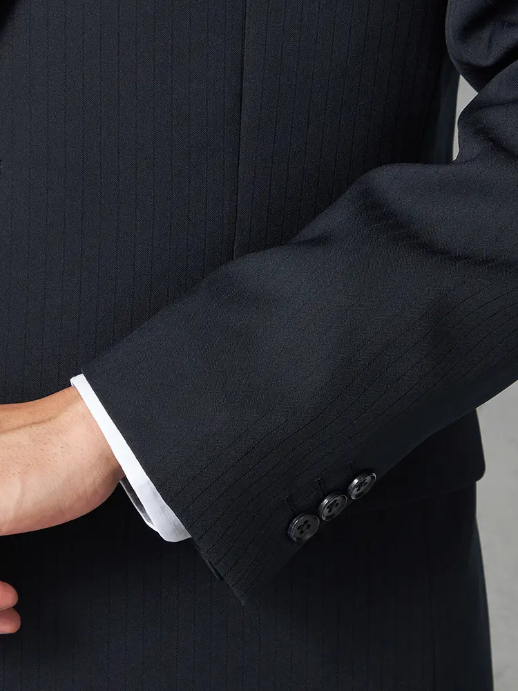 【即納】【WEB限定】スーツ2つボタンブラックシャドウストライプ上下ウォッシャブル3シーズン対応