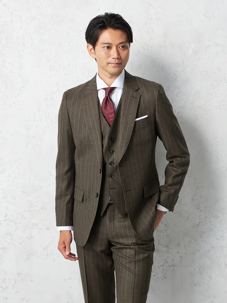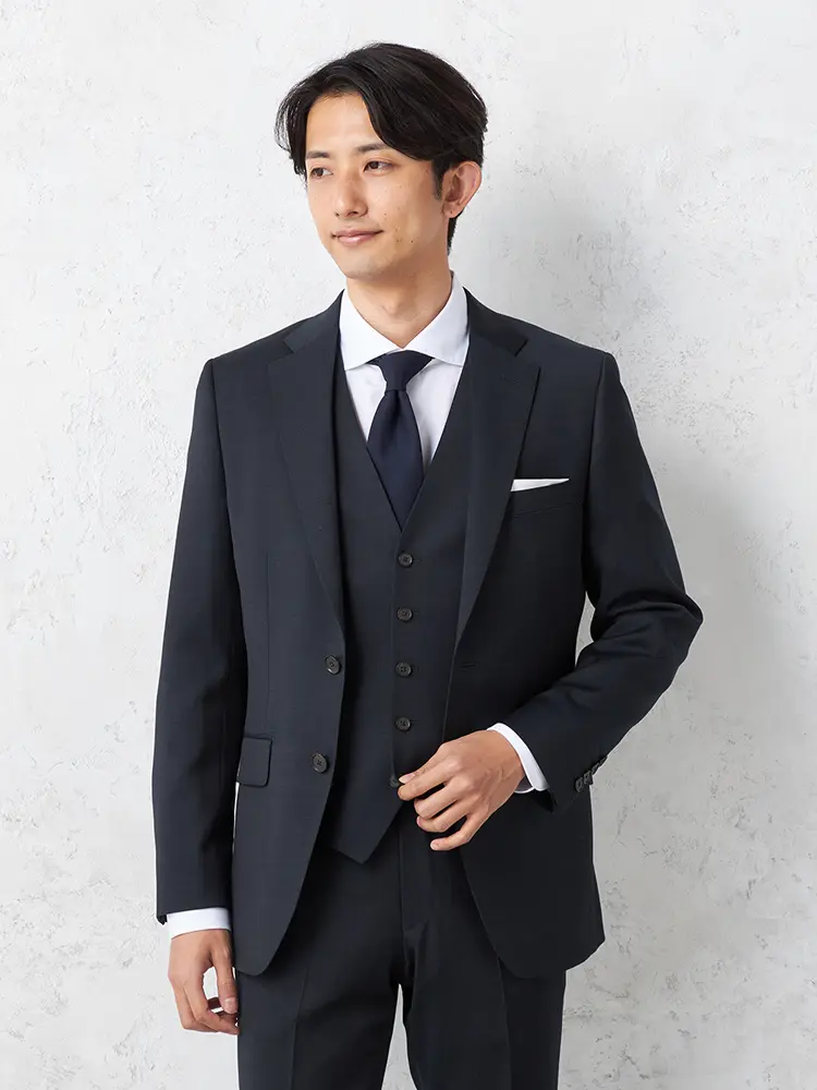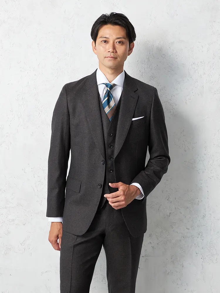 2WAYストレッチ生地に、ジャケットとベストのキュプラの裏地など着心地も快適です。