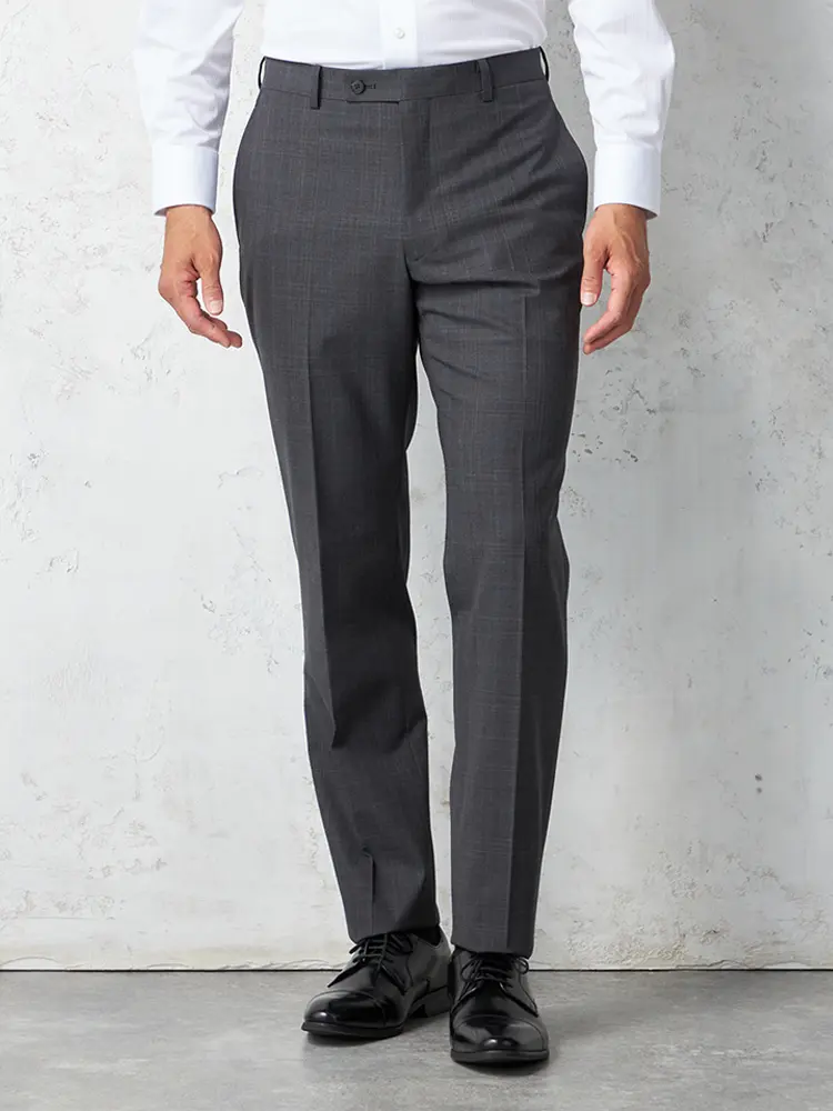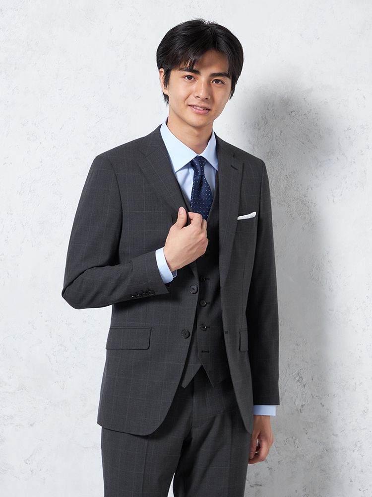 サイドベンツ背抜き仕立てのトラッド感あふれるグレンチェック柄のスリーピーススーツ。