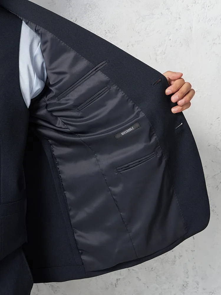 ご自宅の洗濯機でスーツ上下共に丸洗いが可能な上下ウォッシャブル仕様で、いつでも清潔にご着用いただけます。
