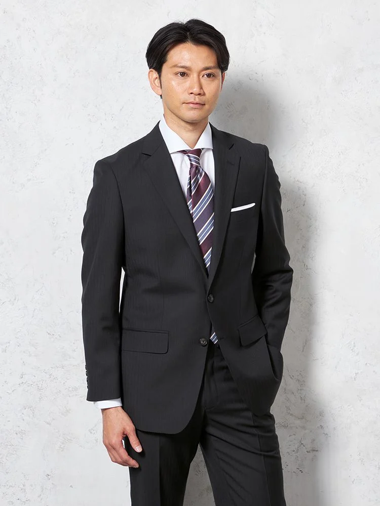 【即納】スーツ 2つボタン【WEB限定】上下ウォッシャブル ブラック ストライプ