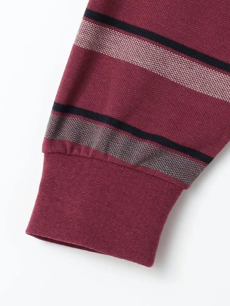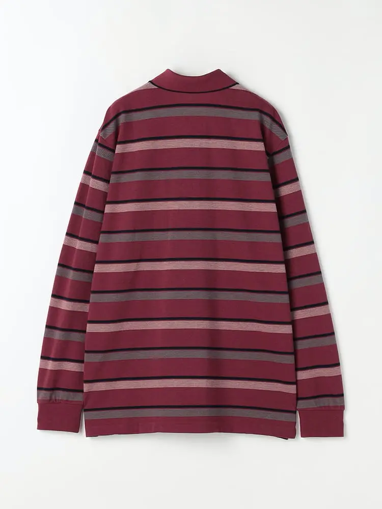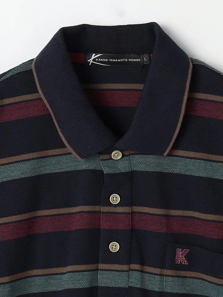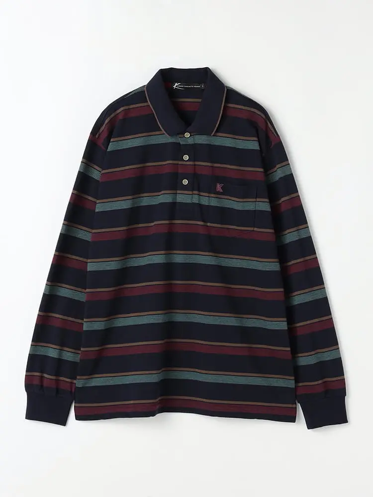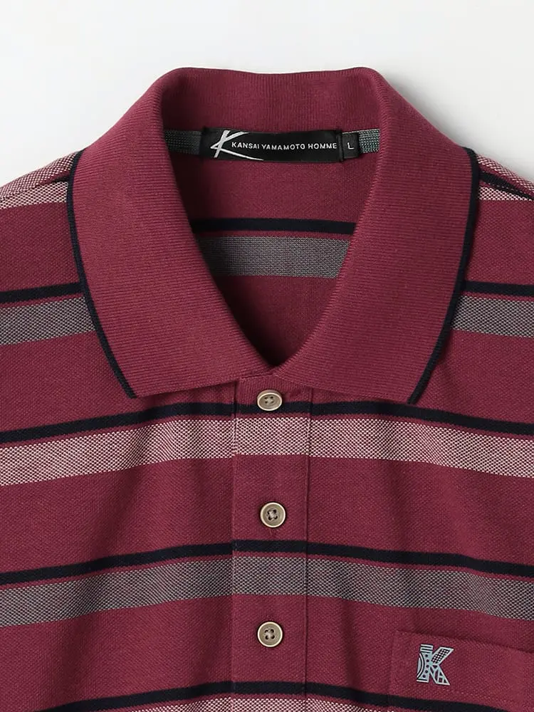 【カンサイ・ヤマモト】ボーダーポロシャツ カジュアルインナー 秋冬(ワイン)