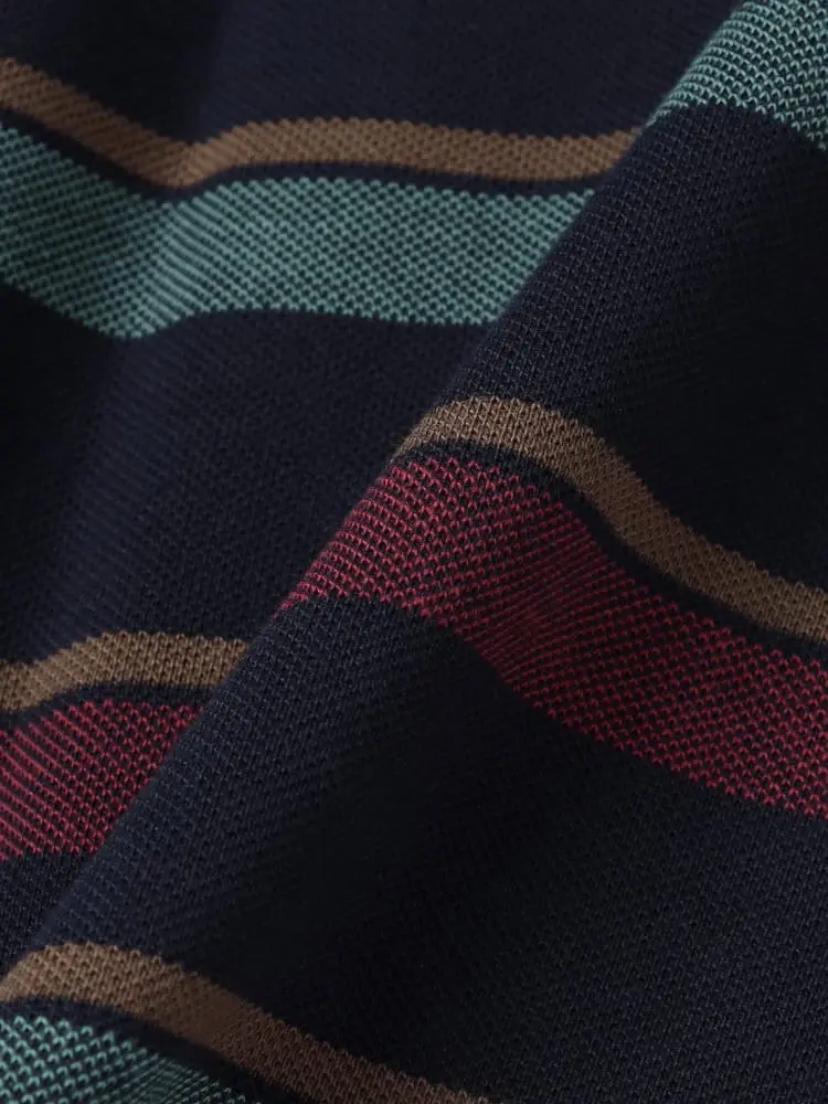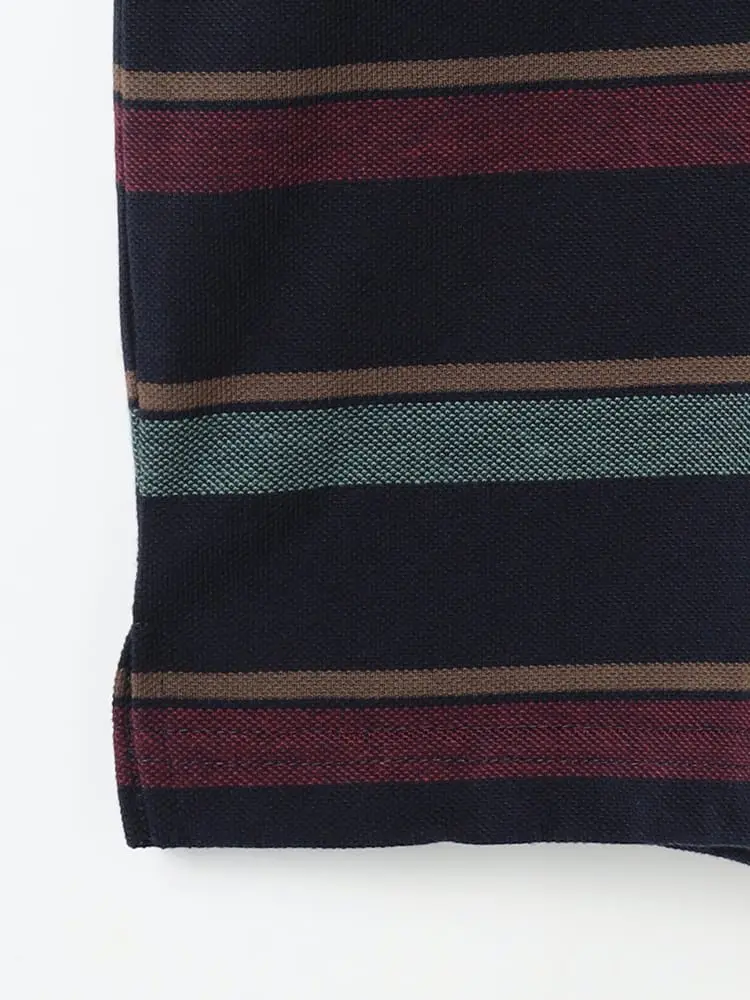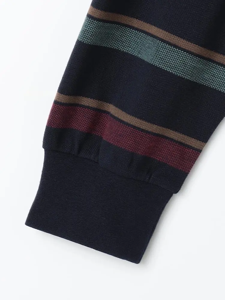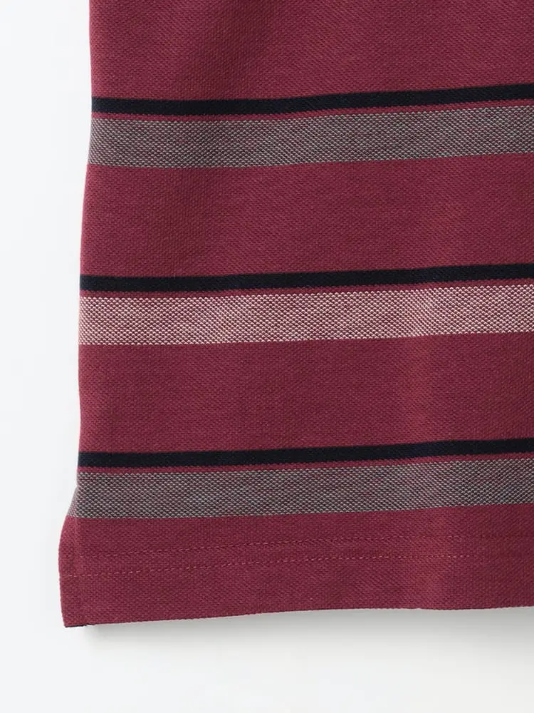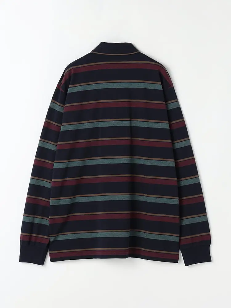 【カンサイ・ヤマモト】ボーダーポロシャツ カジュアルインナー 秋冬(ワイン)