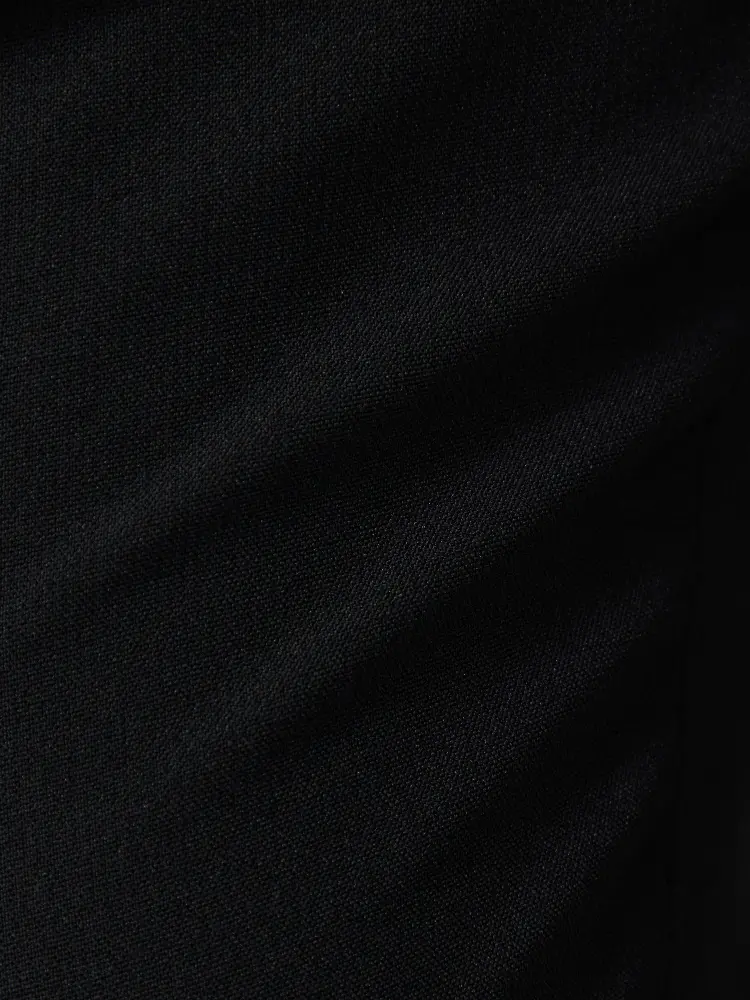パンツの腰回りに生地の折り込みがなく、スッキリとしたシルエットを実現します。シンプルで洗練された印象を与え、すっきりとした着こなしが可能です。