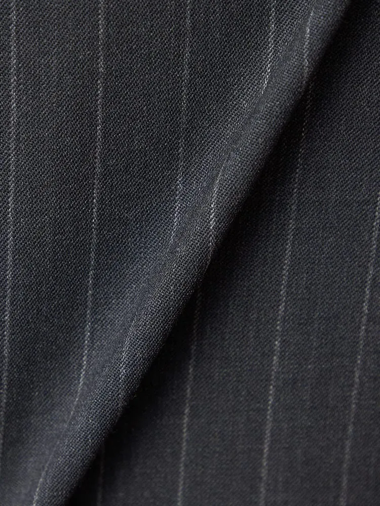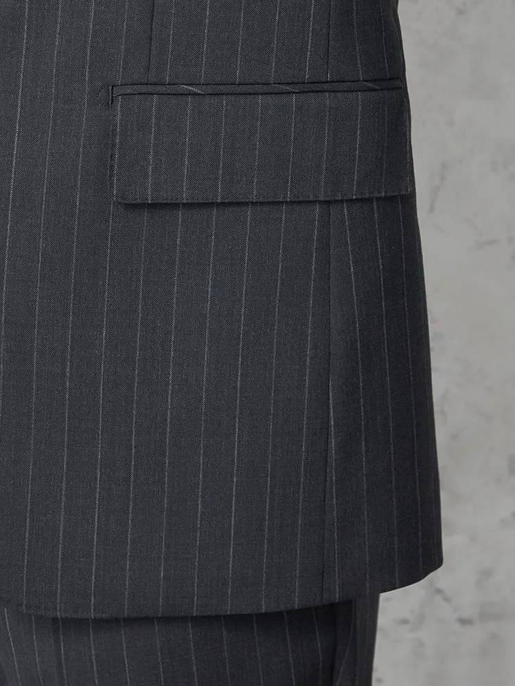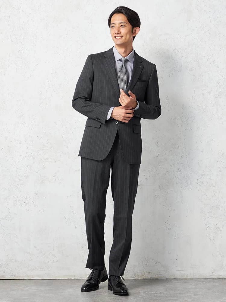 【ウール100%】スーツ 2つボタン イタリア製生地 グレー ストライプ リッケンバッカーホワイト