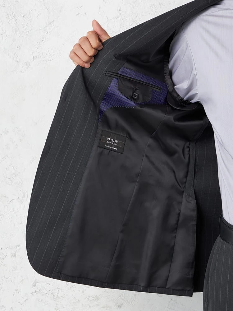 【ウール100%】スーツ 2つボタン 英国製素材【JOHN FOSTER】ブラック シャドウストライプ STOVEL&MASON