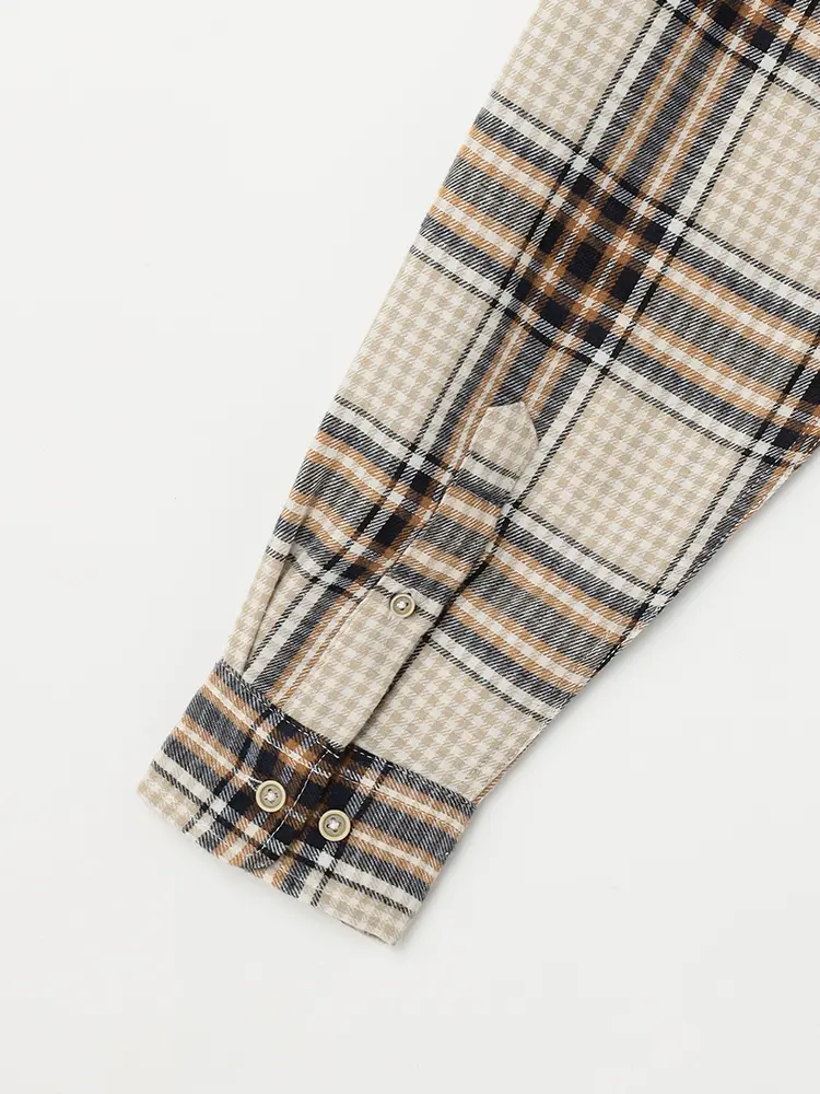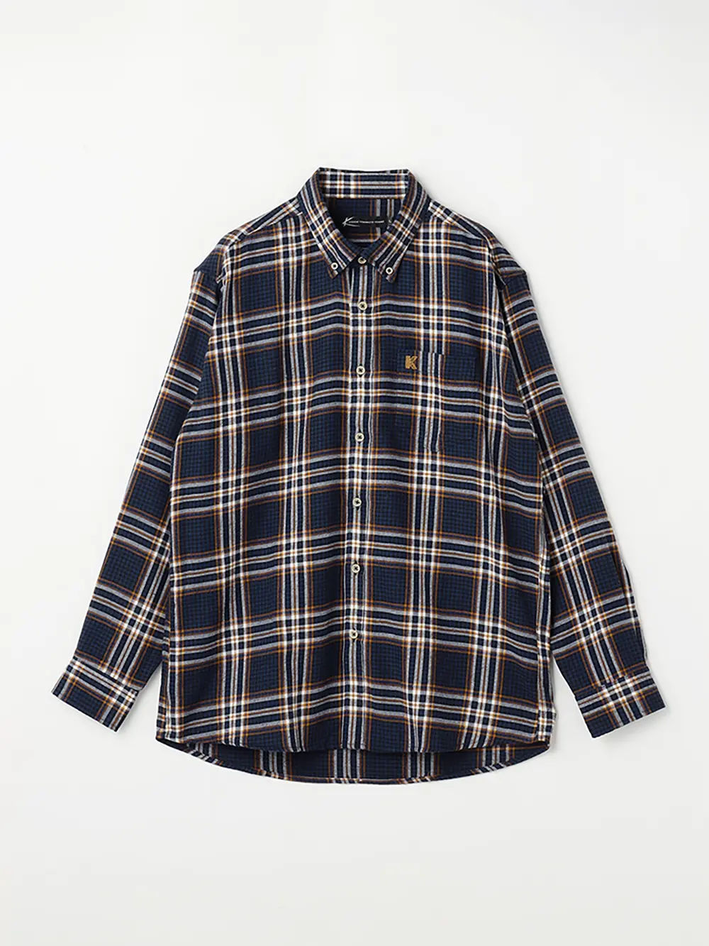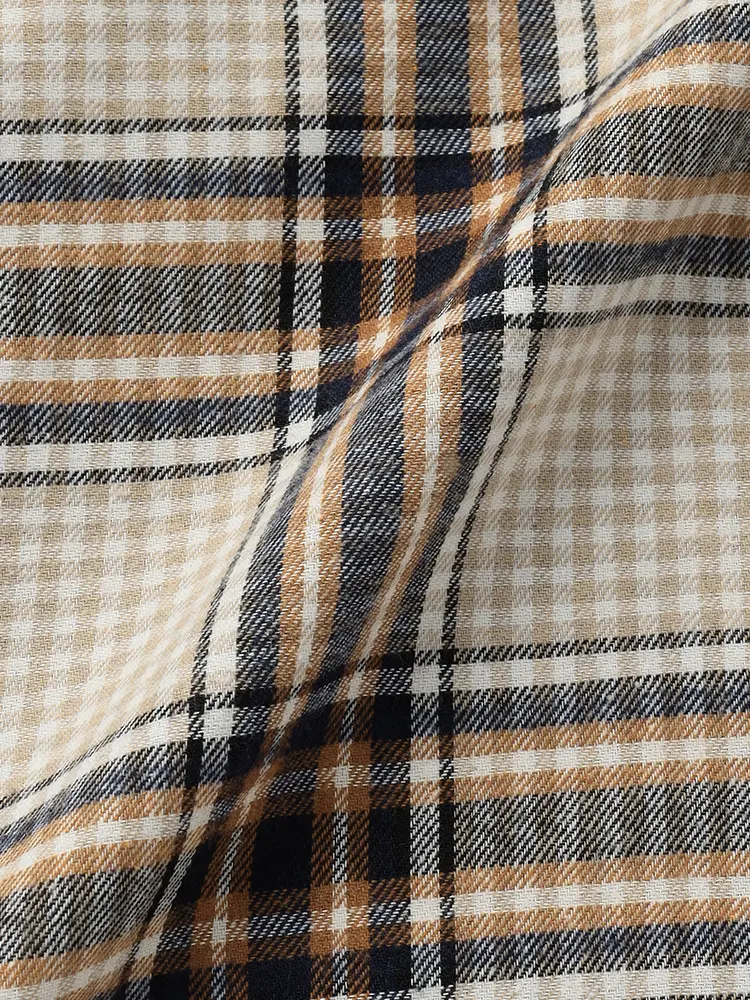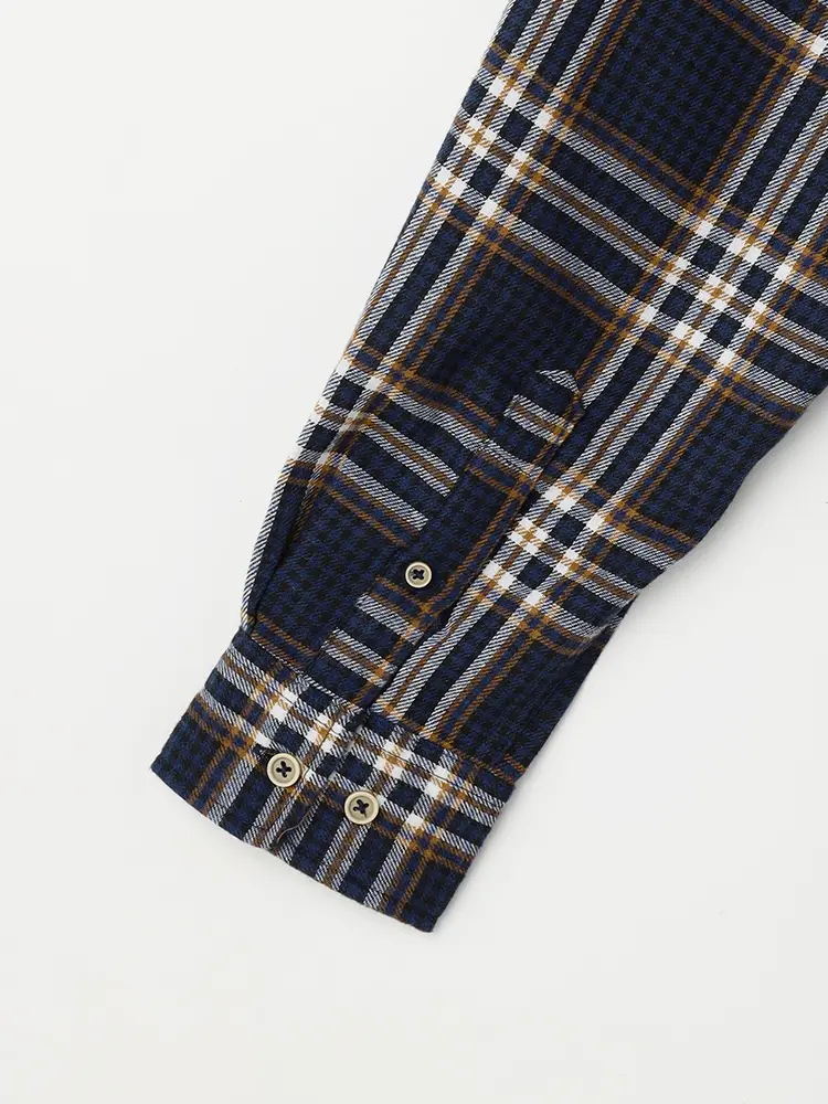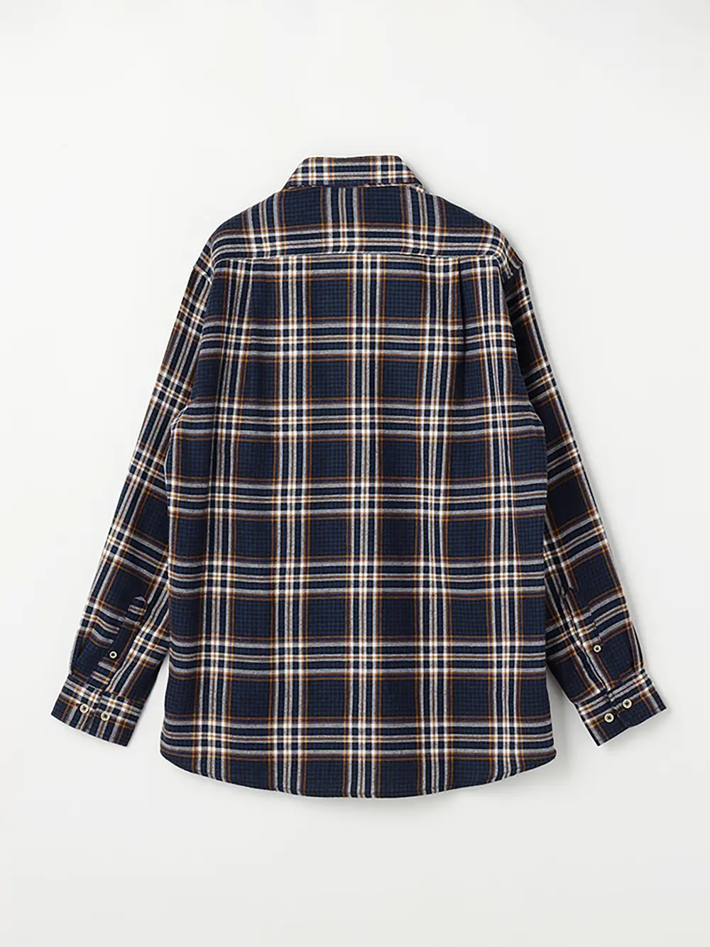 暖かな起毛素材を使用した、秋冬らしいチェック柄の長袖ボタンダウンシャツ。