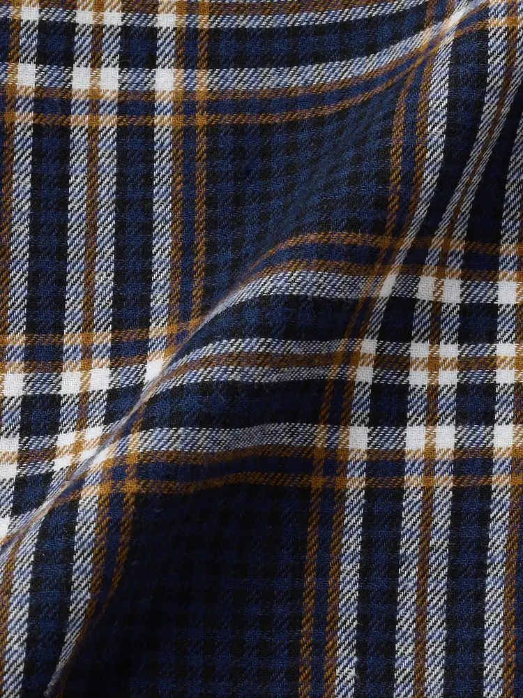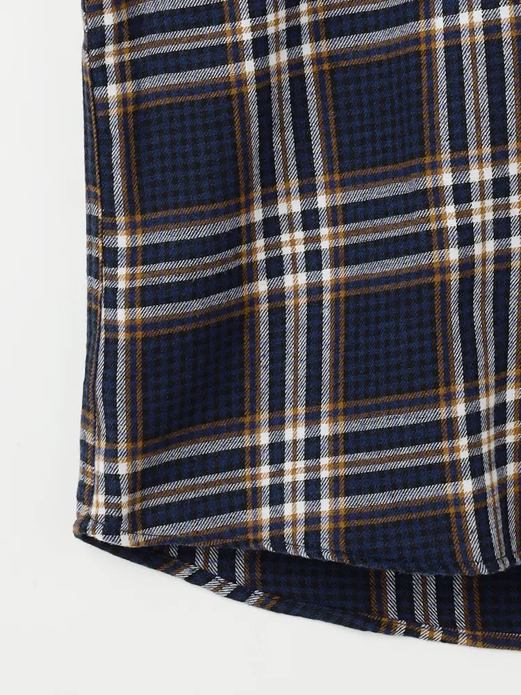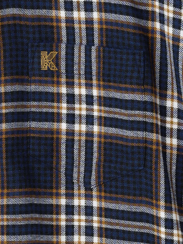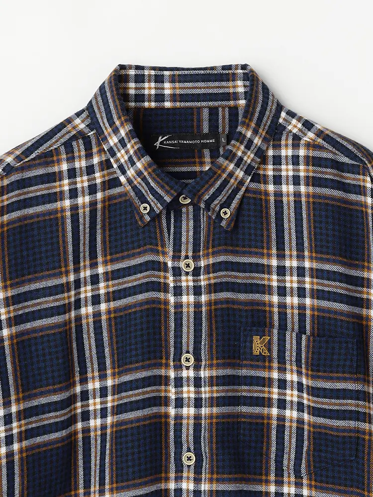 【カンサイ・ヤマモト】 起毛チェックシャツ カジュアルインナー 秋冬(ネイビー)