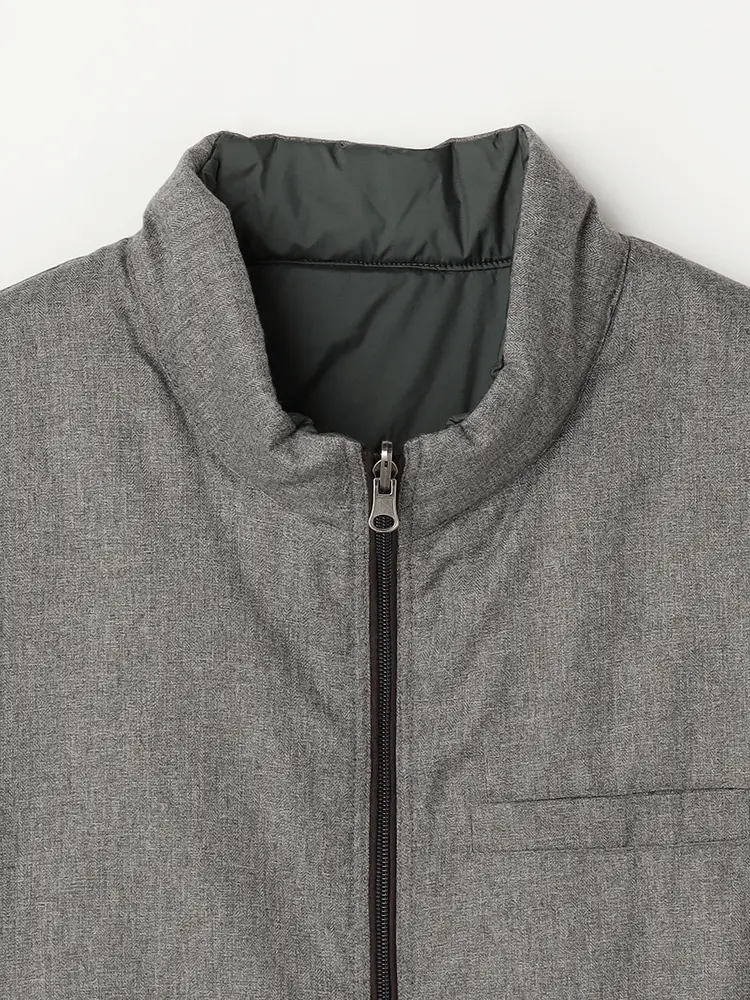 【カンサイ・ヤマモト】リバーシブル中綿ベスト カジュアルアウター 無地 秋冬(M.グレー)