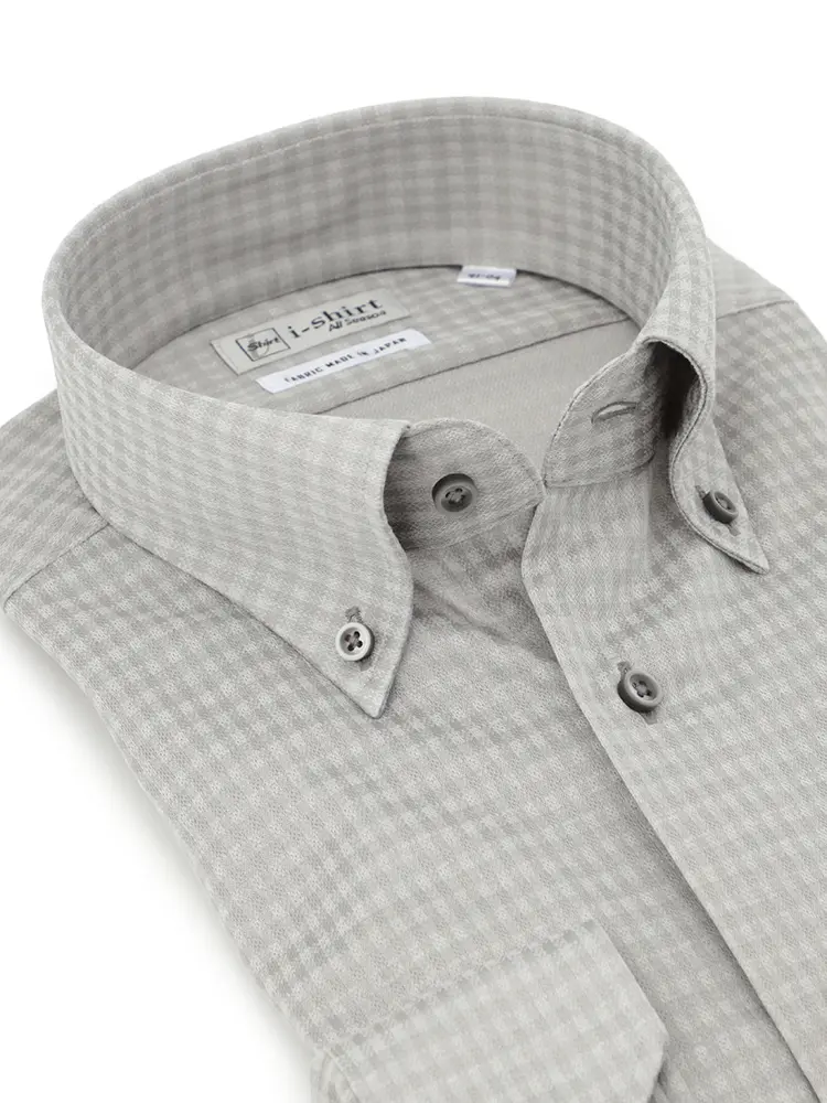【アイシャツ】 長袖Yシャツ ボタンダウン チェック 吸汗速乾 ストレッチ 形態安定 通年(L.グレー)
