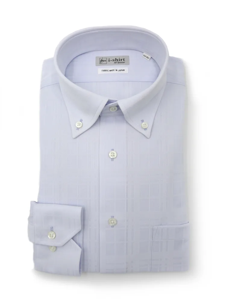 【完全ノーアイロン】長袖アイシャツボタンダウン織柄無地市松柄ストレッチ吸汗速乾ワイシャツi-shirt通年