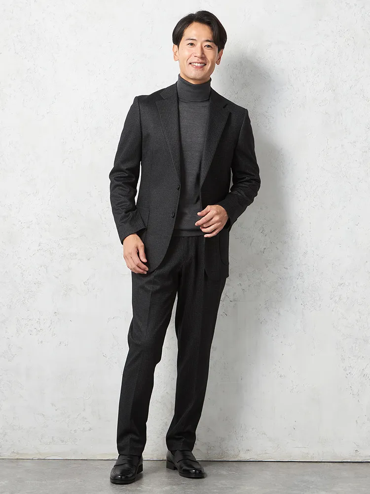 【リッケンバッカーブラック】 ウールジャージセットアップ ジャケット 2つボタン 千鳥格子 上下ウォッシャブル 秋冬(C.グレー)