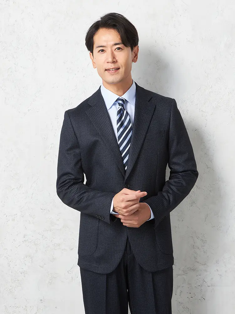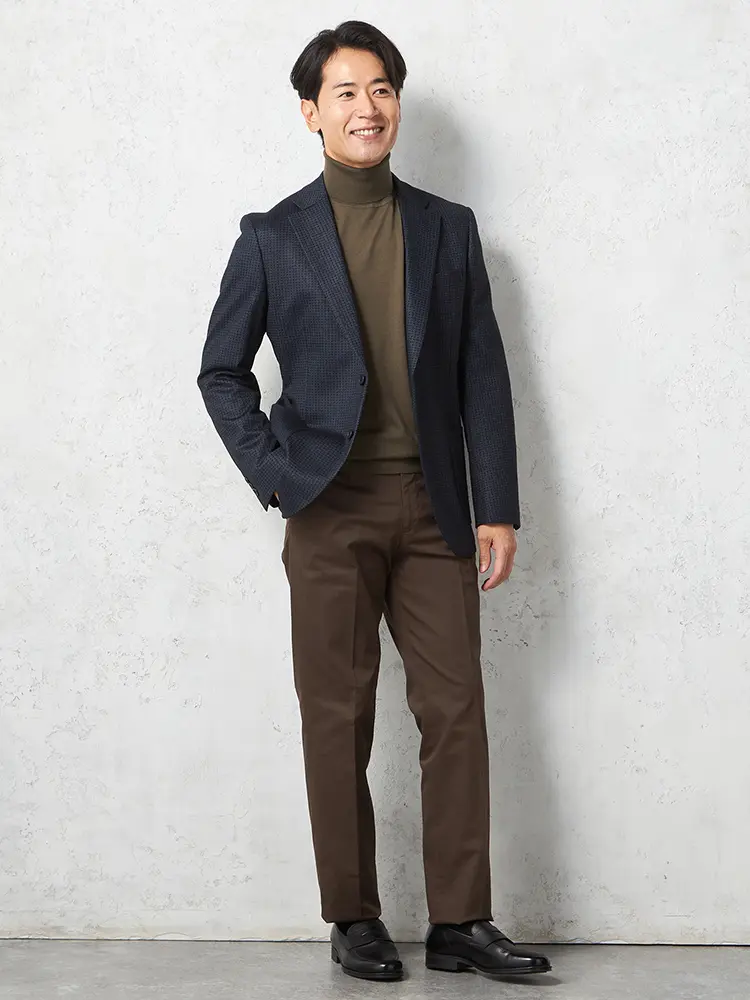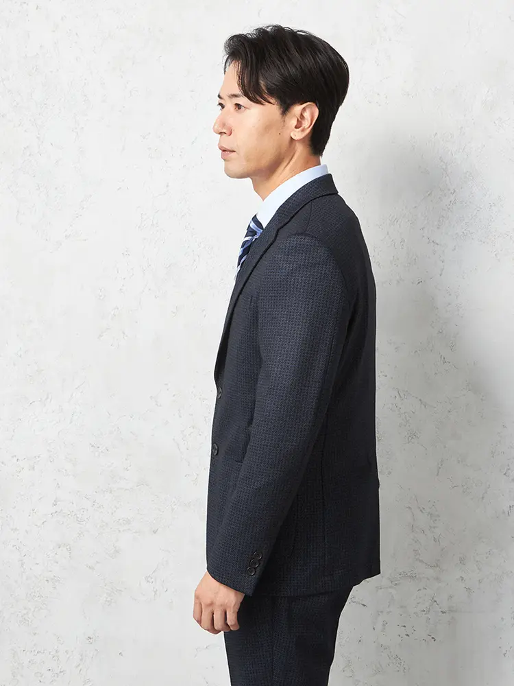 尾州産のウール混ジャージーを使用していて、動きやすく快適な着心地。