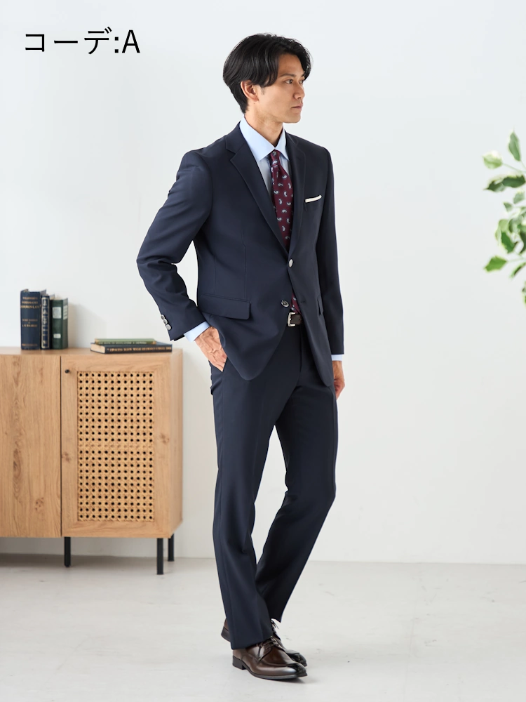 切り込みが1本のセンターベントデザインです。細身でスッキリとしたシルエットが特徴で、快適な着心地を提供します
